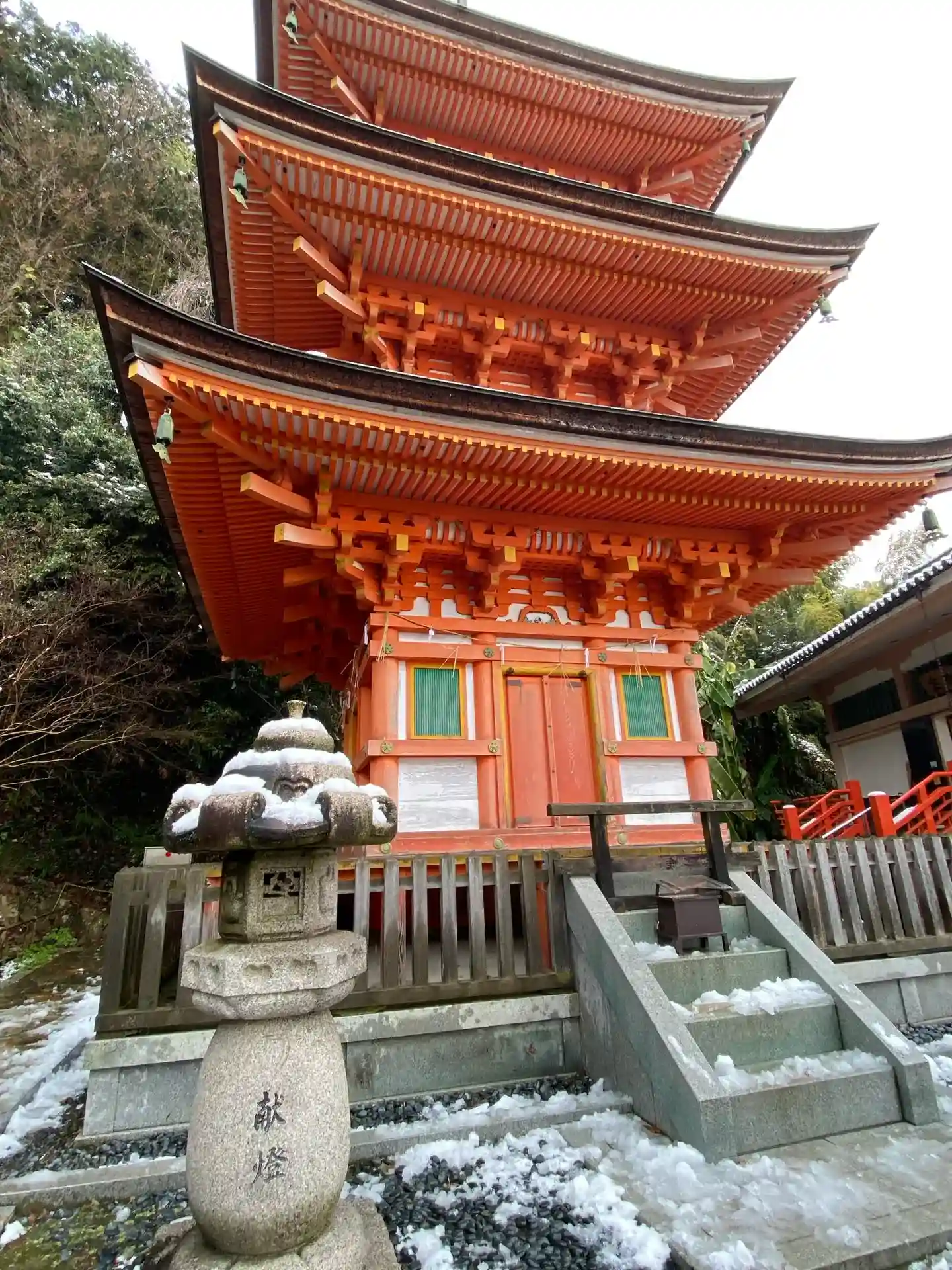 祈りの階段と呼ばれる165段の急な石段を上がると美しい宝巌寺の本堂。