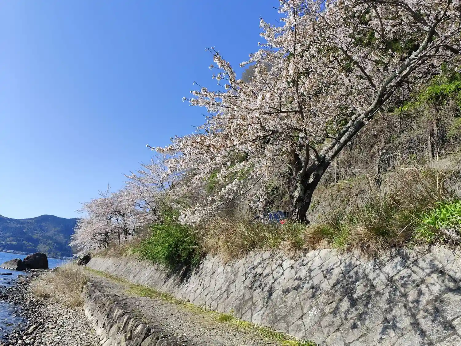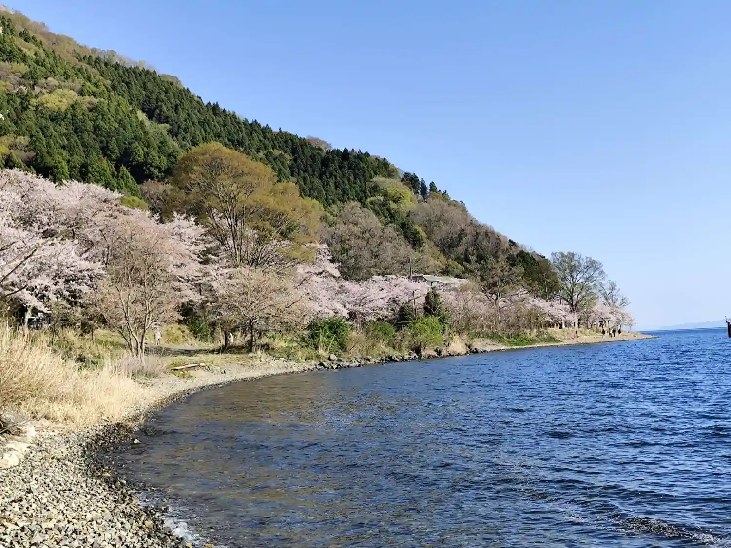 琵琶湖沿いの桜並木を奥へと進み到着🙂