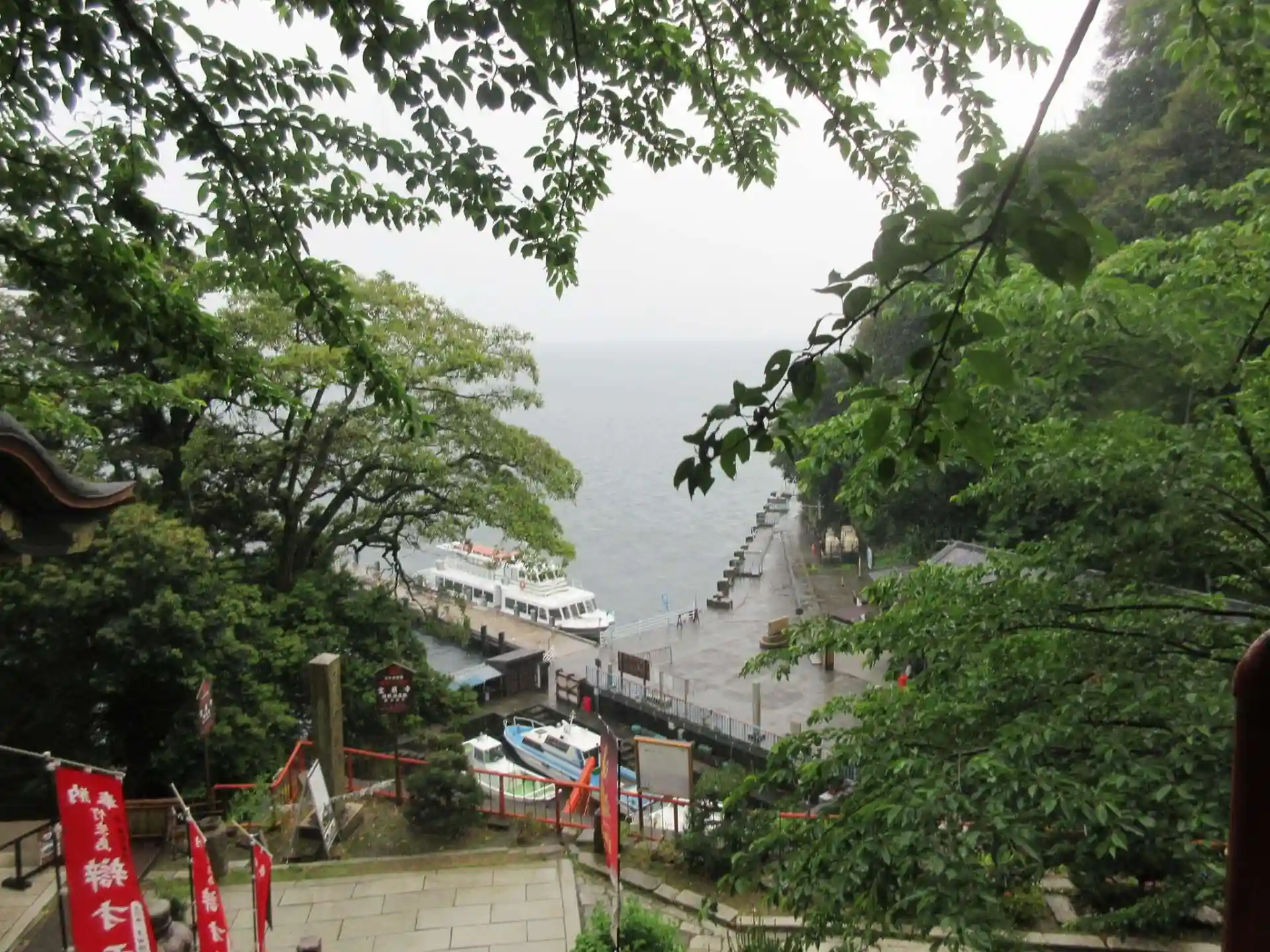 昨日と違って雨中のフェリーとなりました。平日と重なって彦根港からの乗船は3組だけでした。