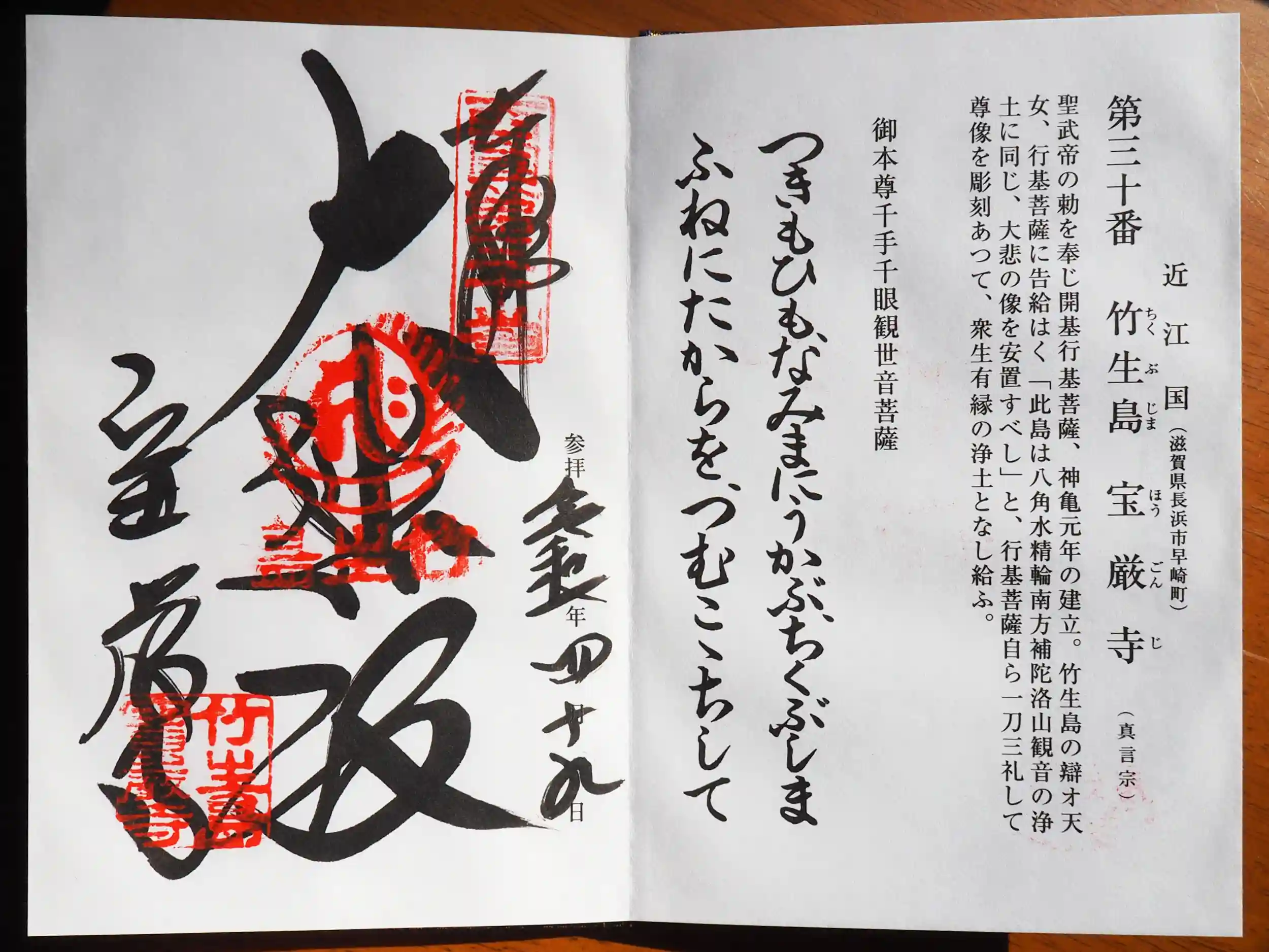 写真撮ってる間に到着。島全体が弁財天の聖地とされています。到着して空腹だったので、まず名物の近江牛まんをいただいたのが失敗。満足して石段を登り、いざお寺に着くと御朱印は長蛇の列!先に参拝すべきでした。