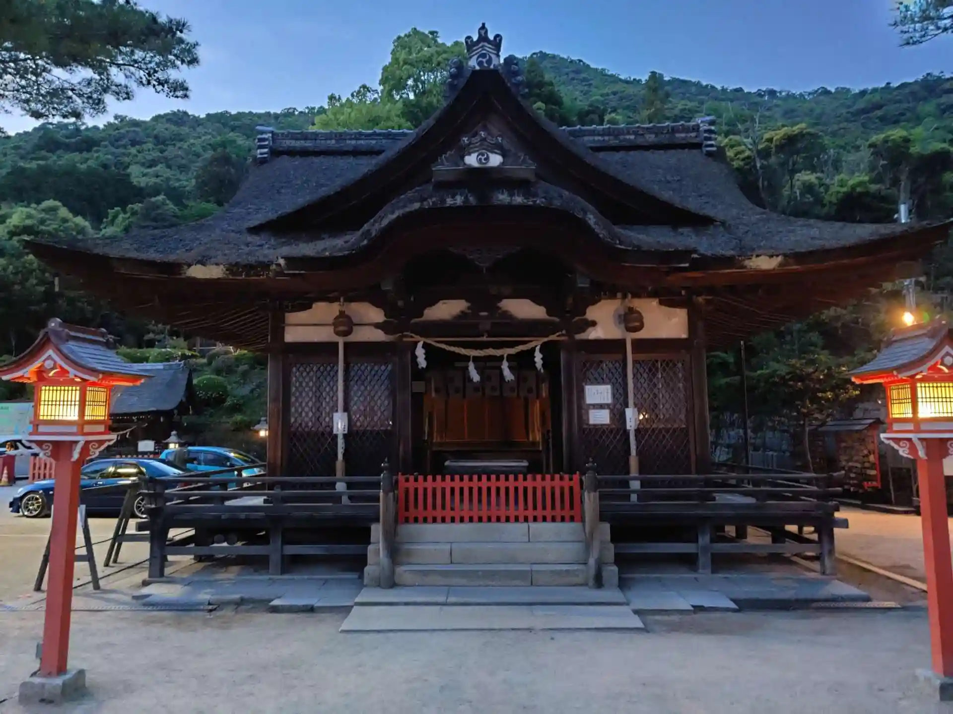 神社と鳥居の間は交通量の多い国道で、昼間や夕方は渡るのはやめましょう(神社からも注意喚起してます)