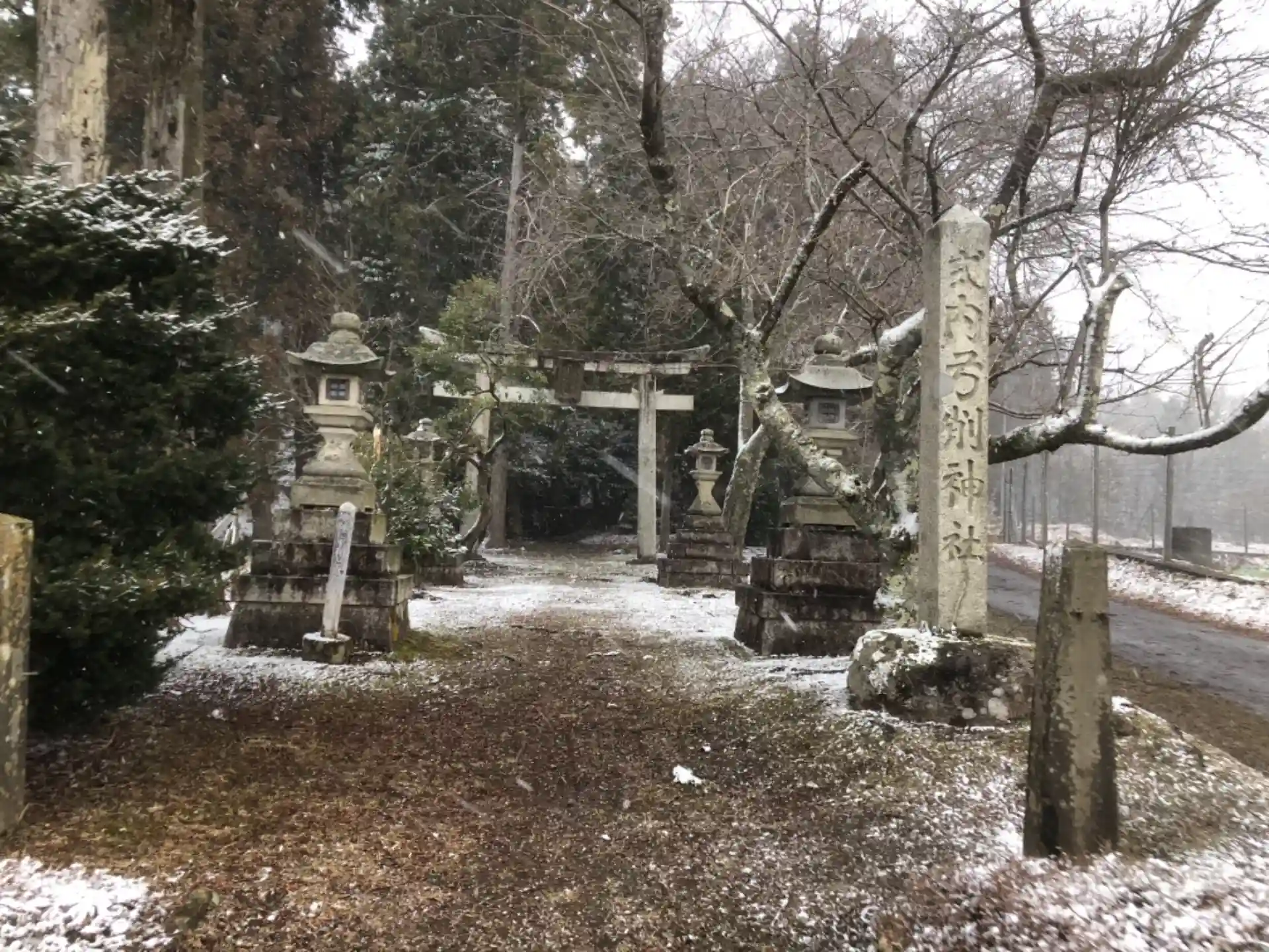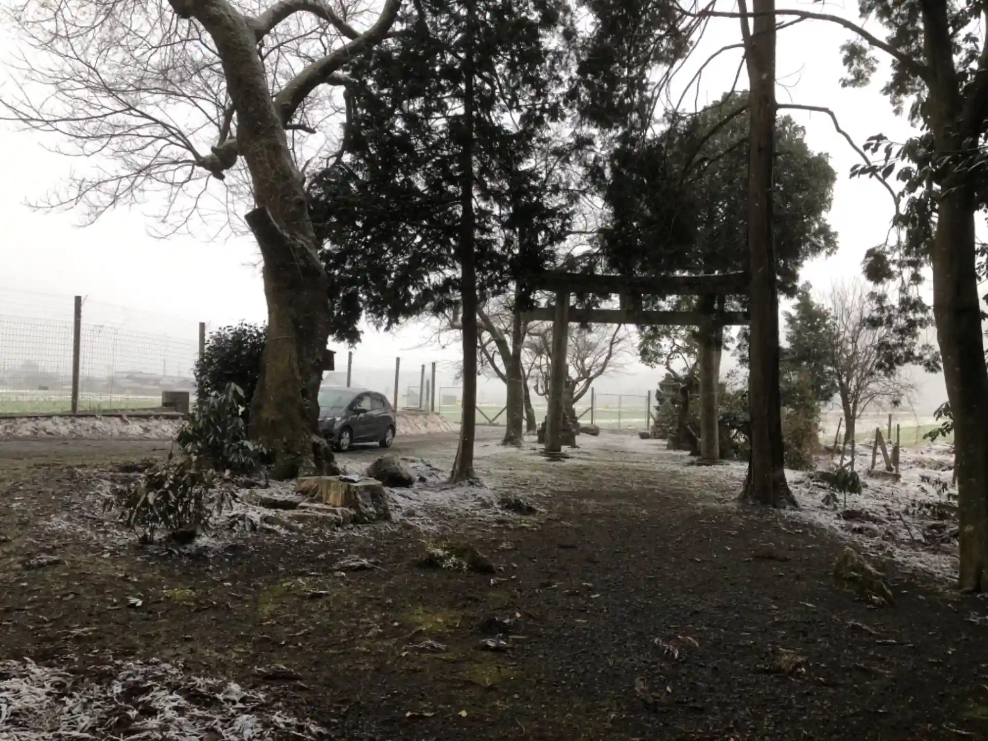 写真右手にフェンスが見えると思います。この神社は獣害指定区域の中にあるため、参拝するにはフェンスの扉を開けて中に入る必要があります。