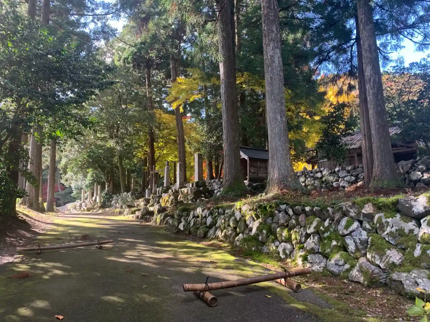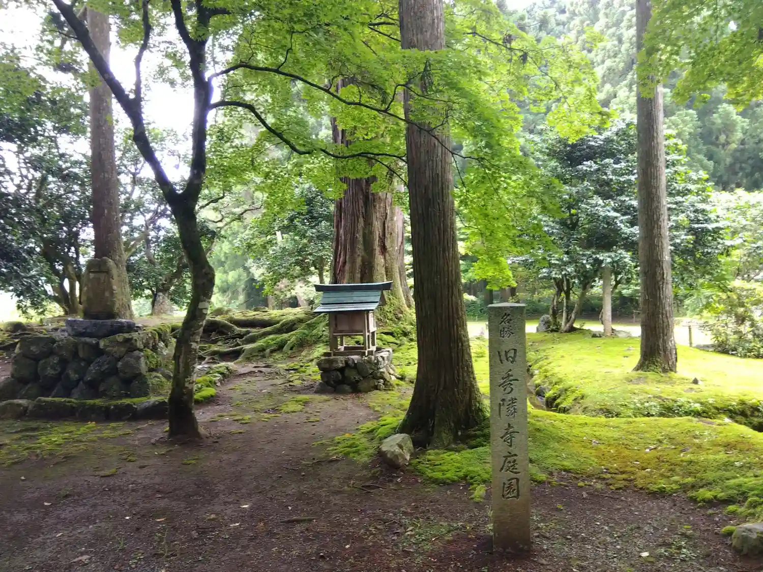 駐車場から苔むした参道を歩きます