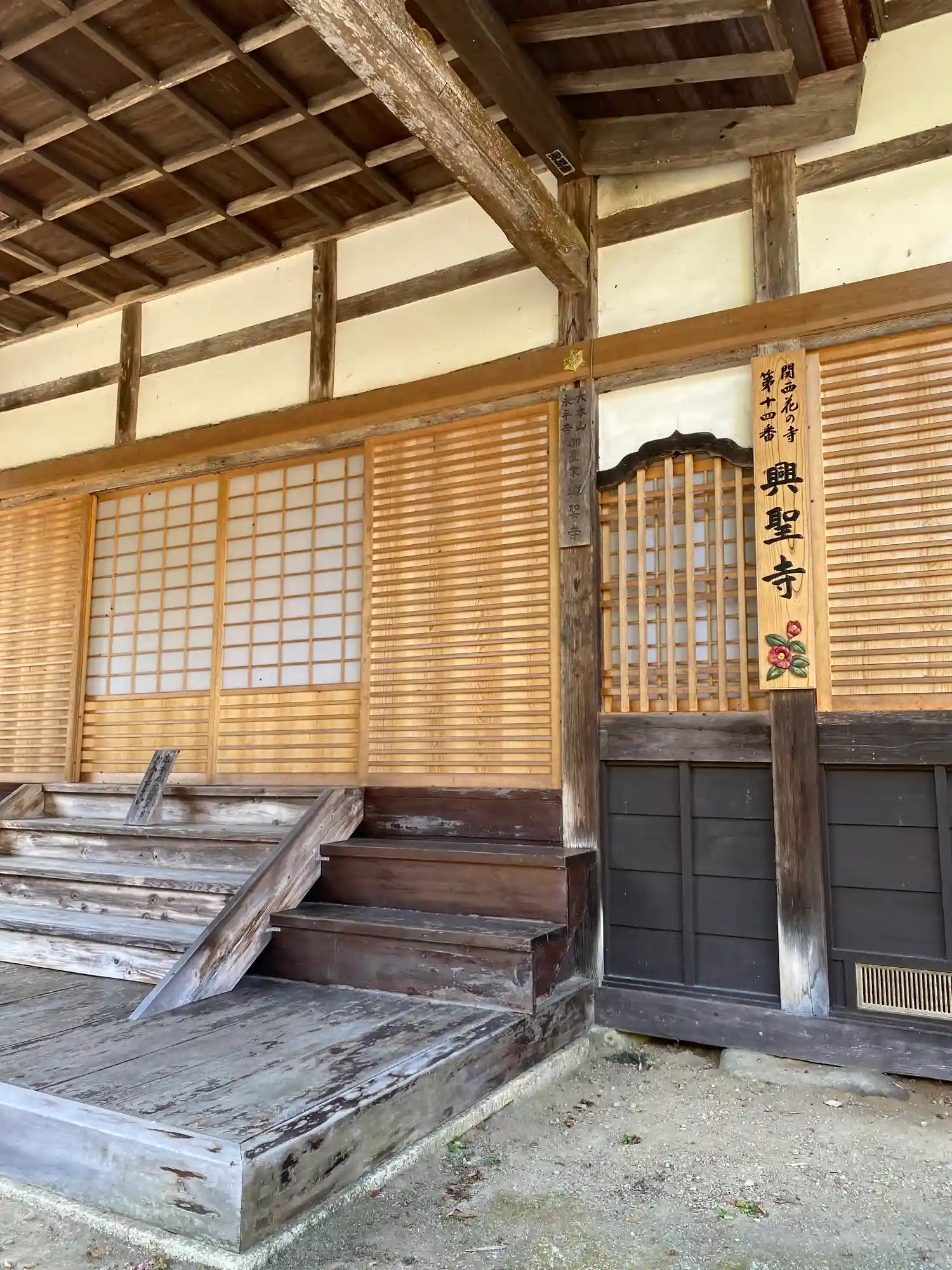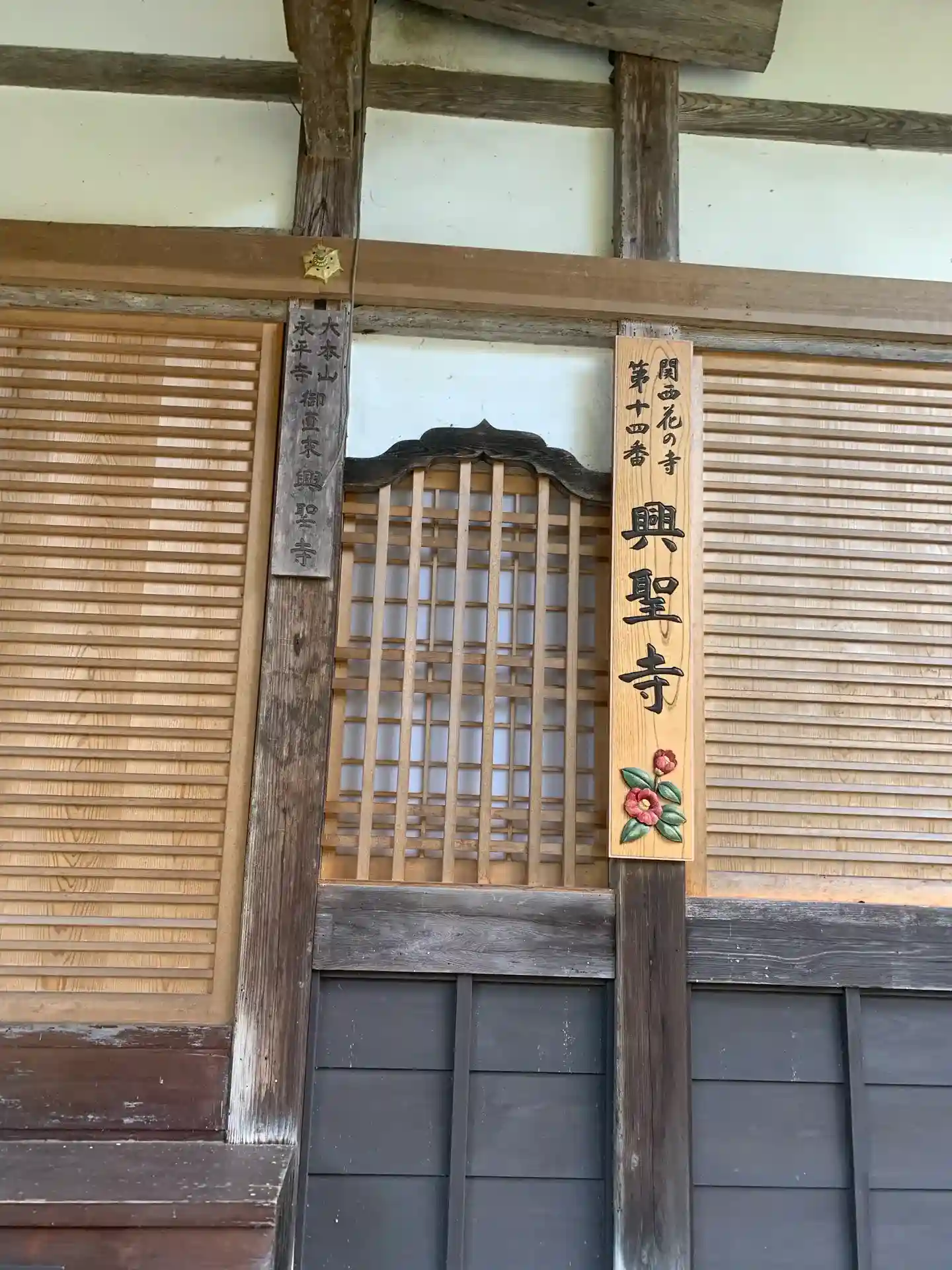 本堂前の関西花の寺の看板🌸