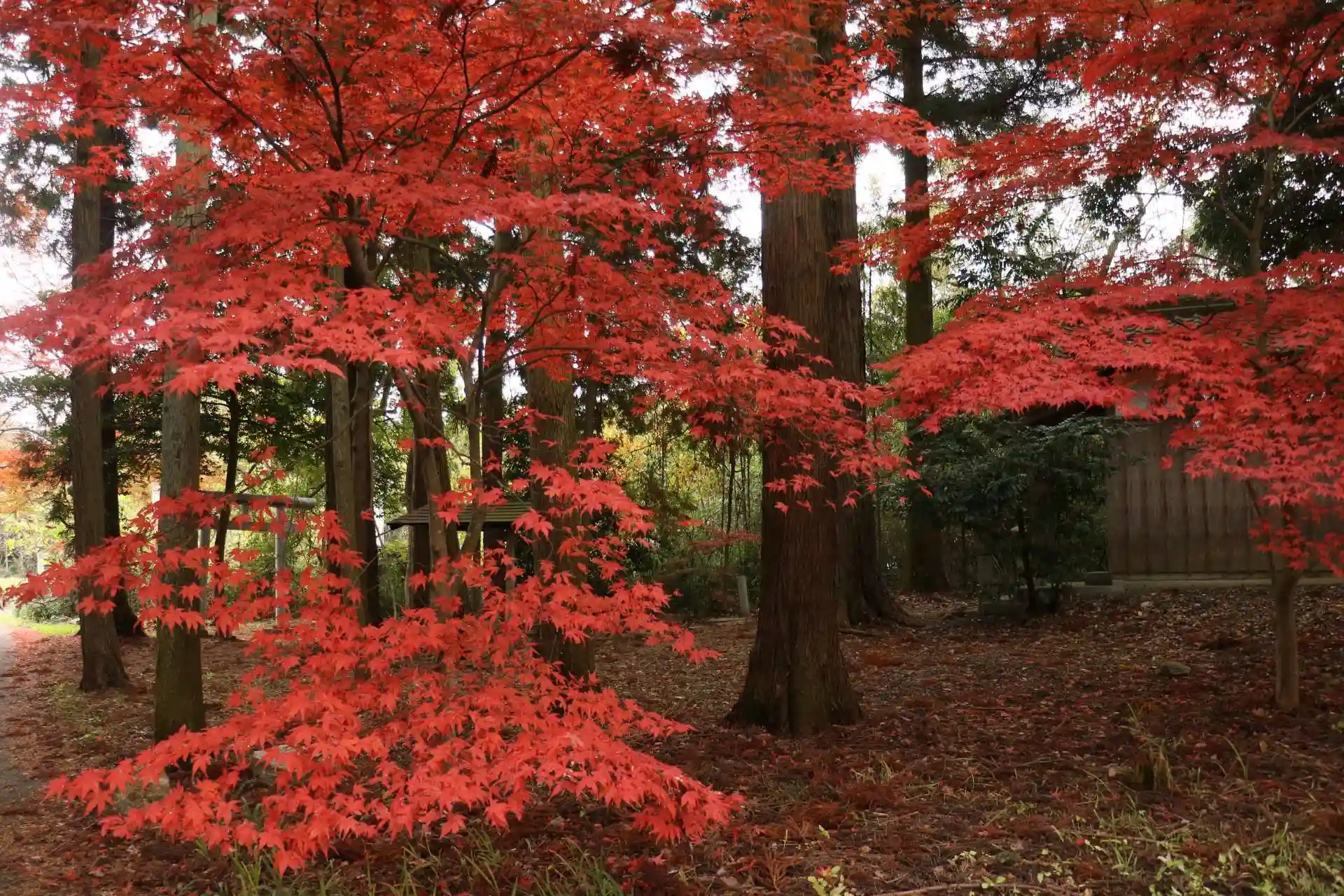 雑木林の中にあります。広いとは言いづらい道中の道です。