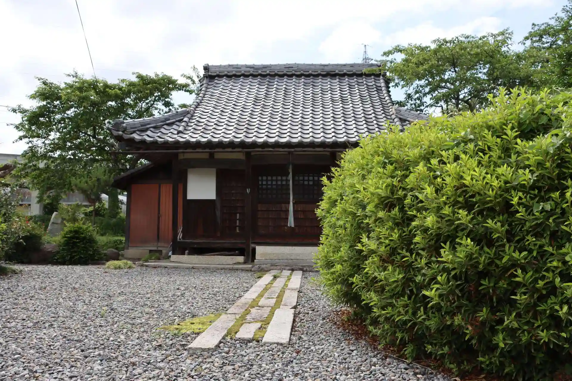 江若鉄道饗庭駅跡からJR湖西線の高架をくぐり東側にあるお堂です。