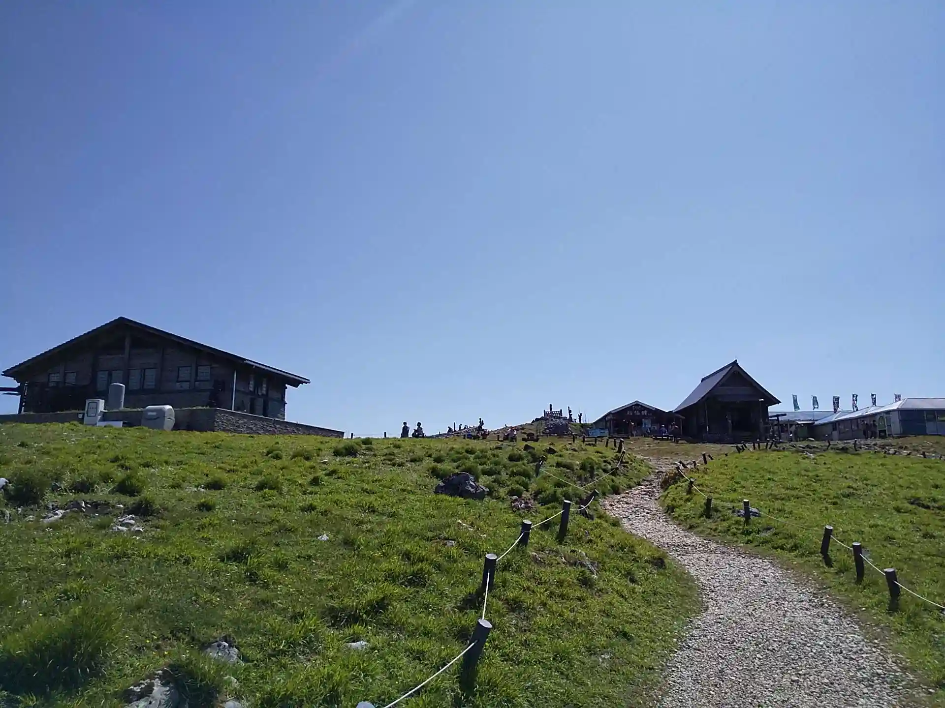 右の建物が食事やお土産を買えるスカイテラス伊吹山。御山印もこちらで。