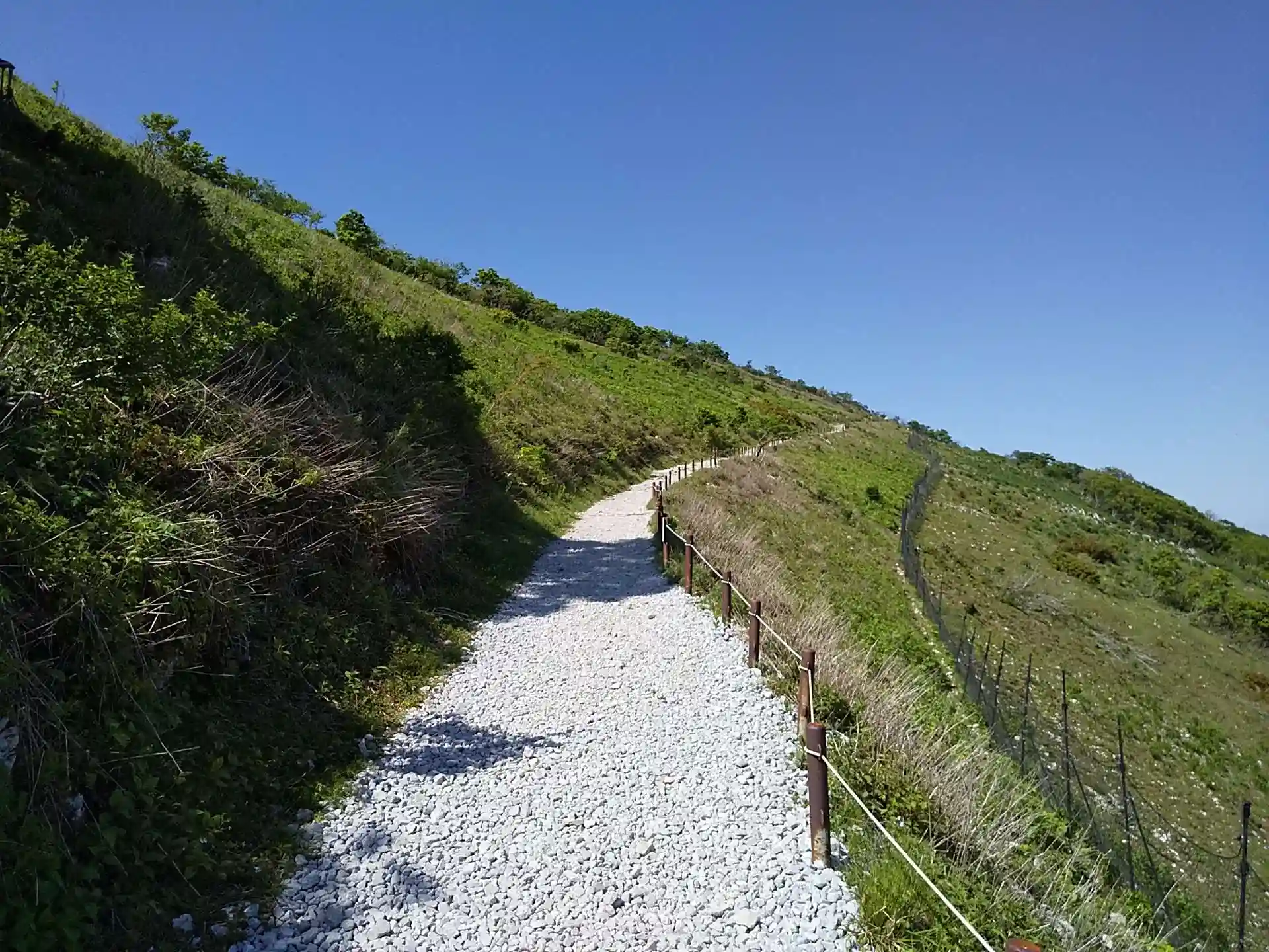 下山は時間短縮のため中央登山道を使用。下に見えるのがスカイテラス伊吹山と駐車場。