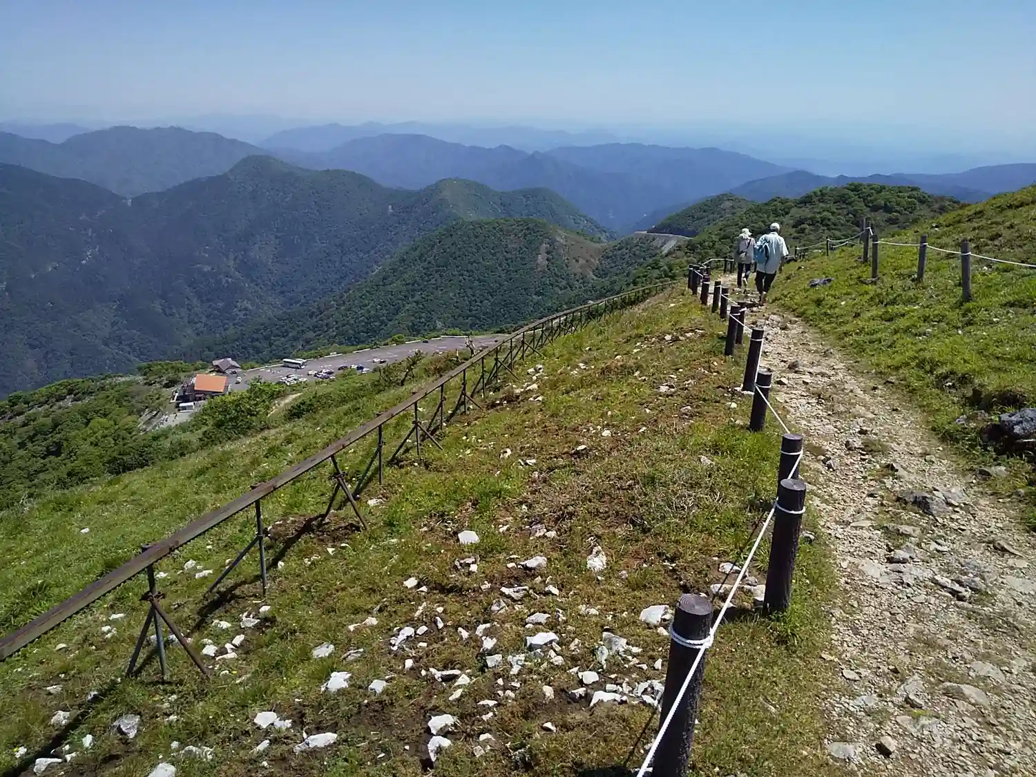 下山は時間短縮のため中央登山道を使用。下に見えるのがスカイテラス伊吹山と駐車場。