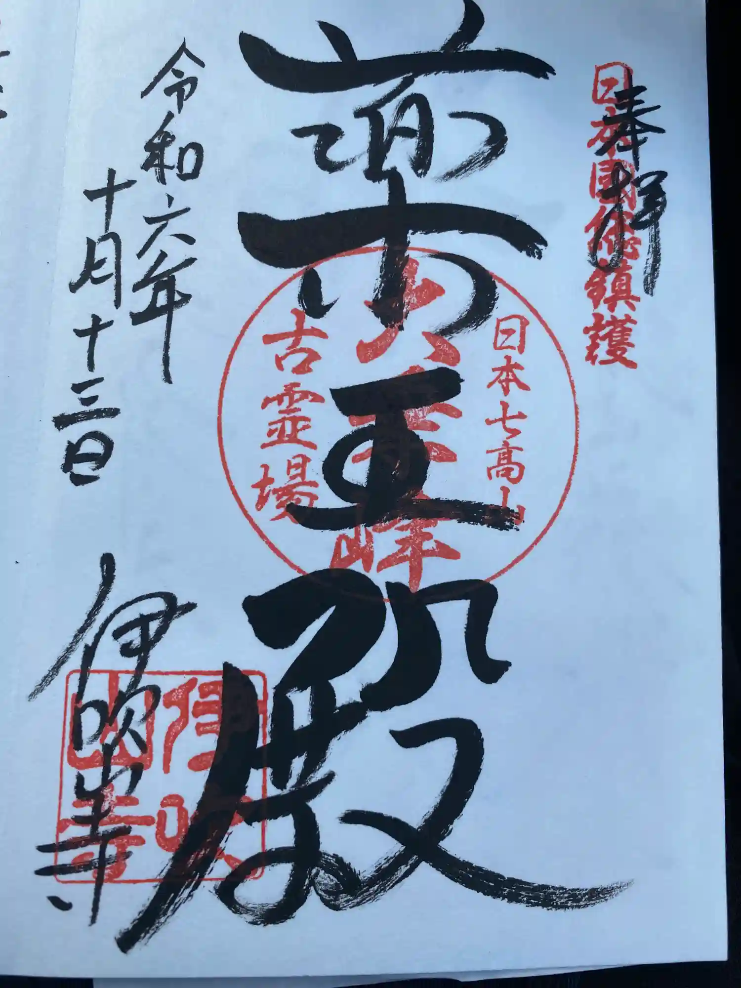 御朱印には「日本七高山 大乗峰 古霊場」の印。