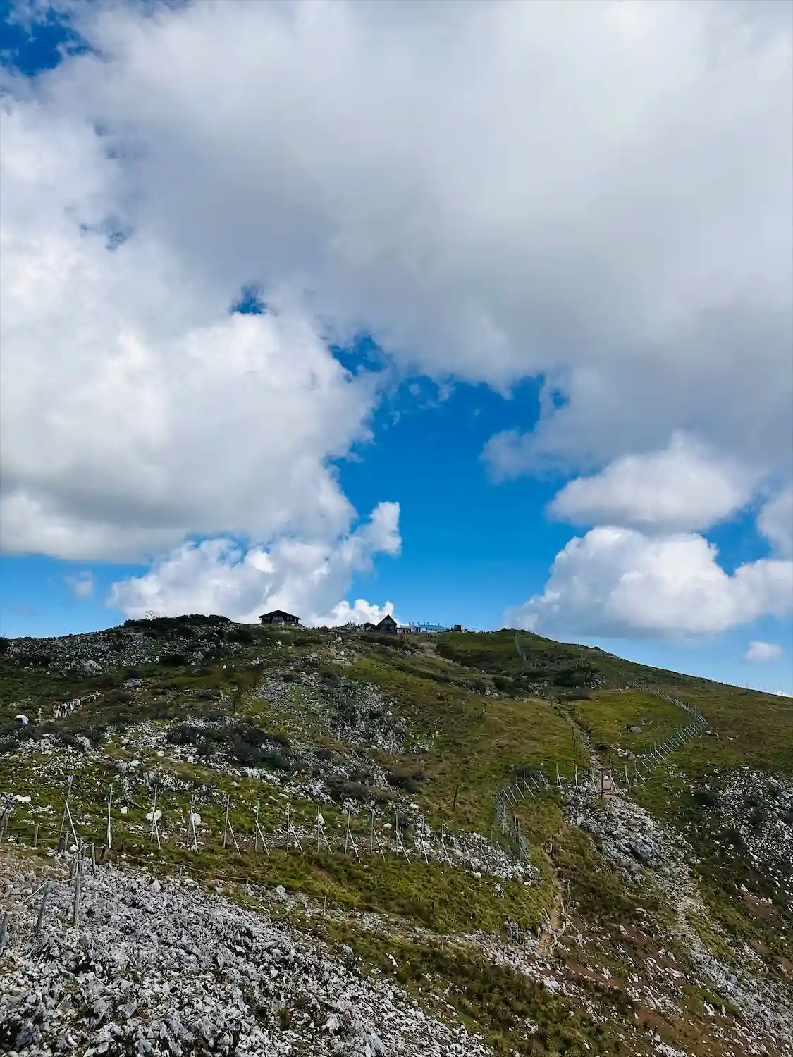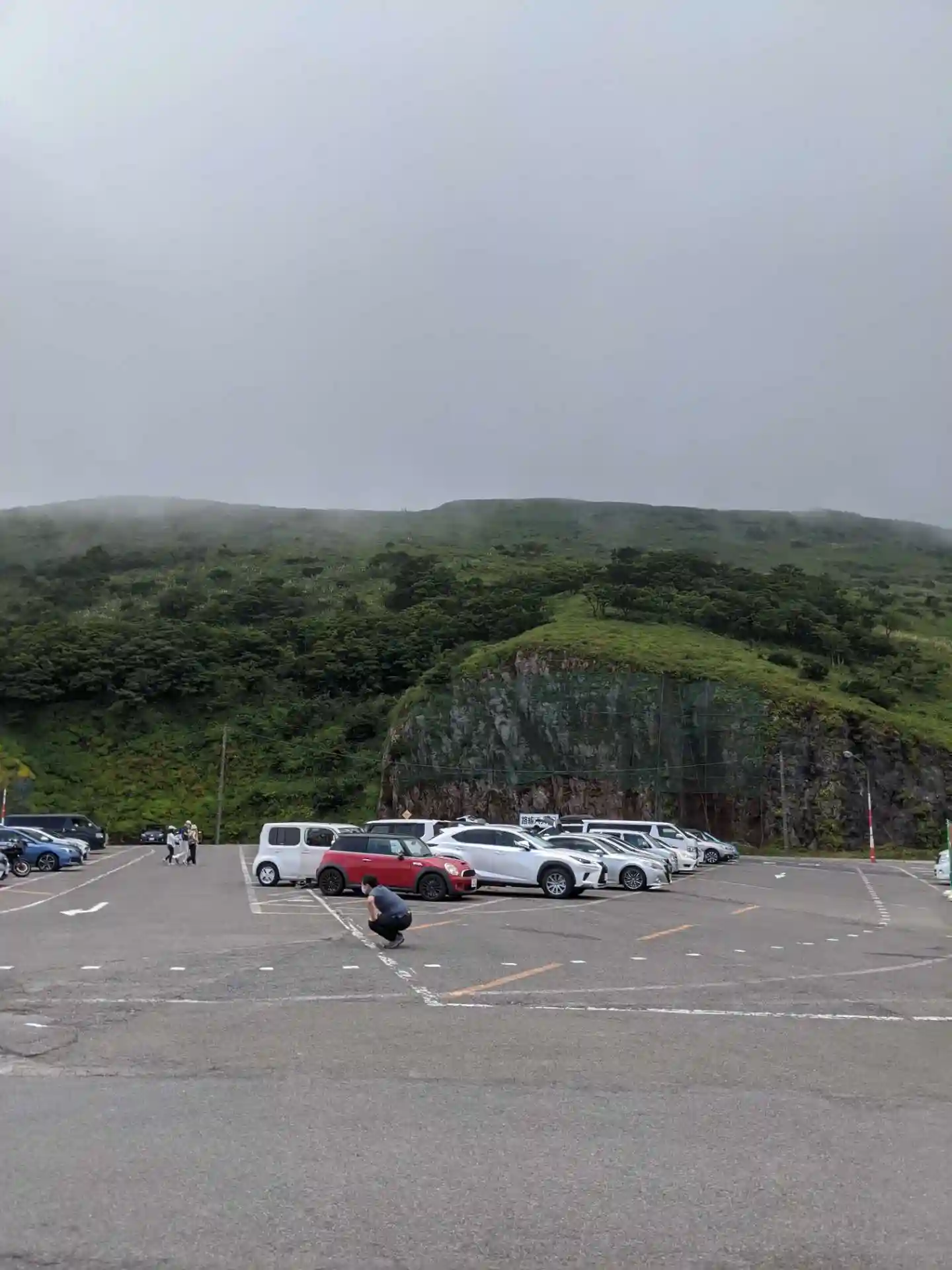 9合目まで車で行けます。最初の気温が33℃だったのが、登るにつれてどんどん下がり駐車場に着いた時は26℃でした。やっぱり涼しい😺向こうに見える頂上にはハイキング気分で行けます。