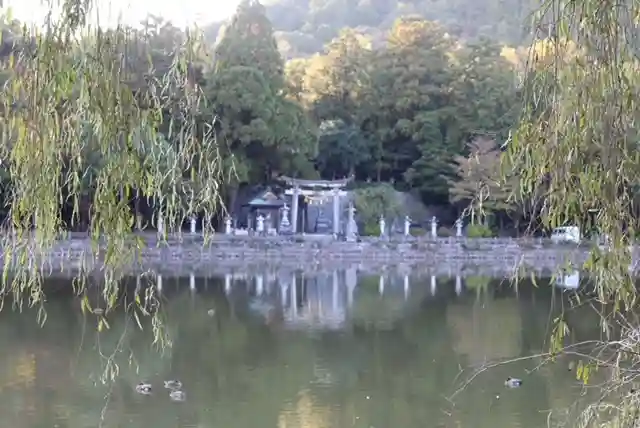 なんとなく階段を上って行くと木が多い茂った境内。少し怖くてそっと手を合わせ降りようと振り返ったその景色は神社の正面に三島池、その向こうに伊吹山。まさしく求めていた感動の景色、神様からの素敵なプレゼントでした。