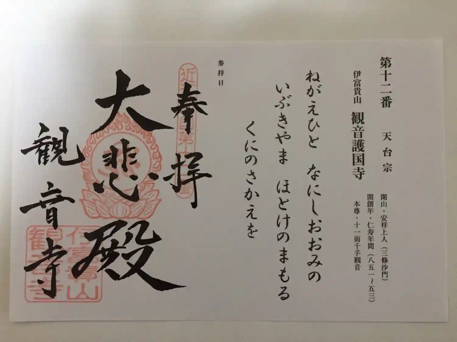 近江三十三ヶ所観音霊場第十二番の御朱印