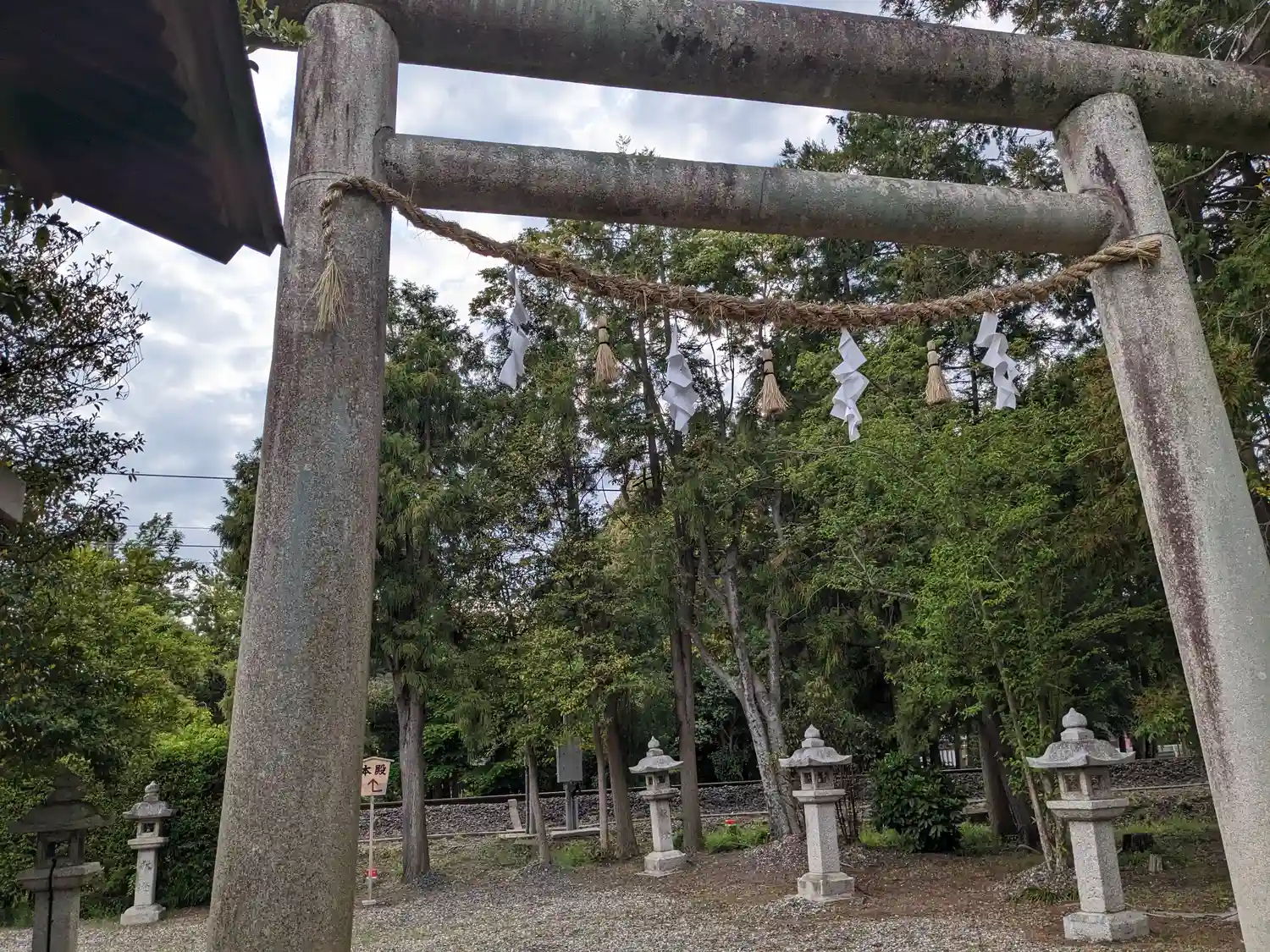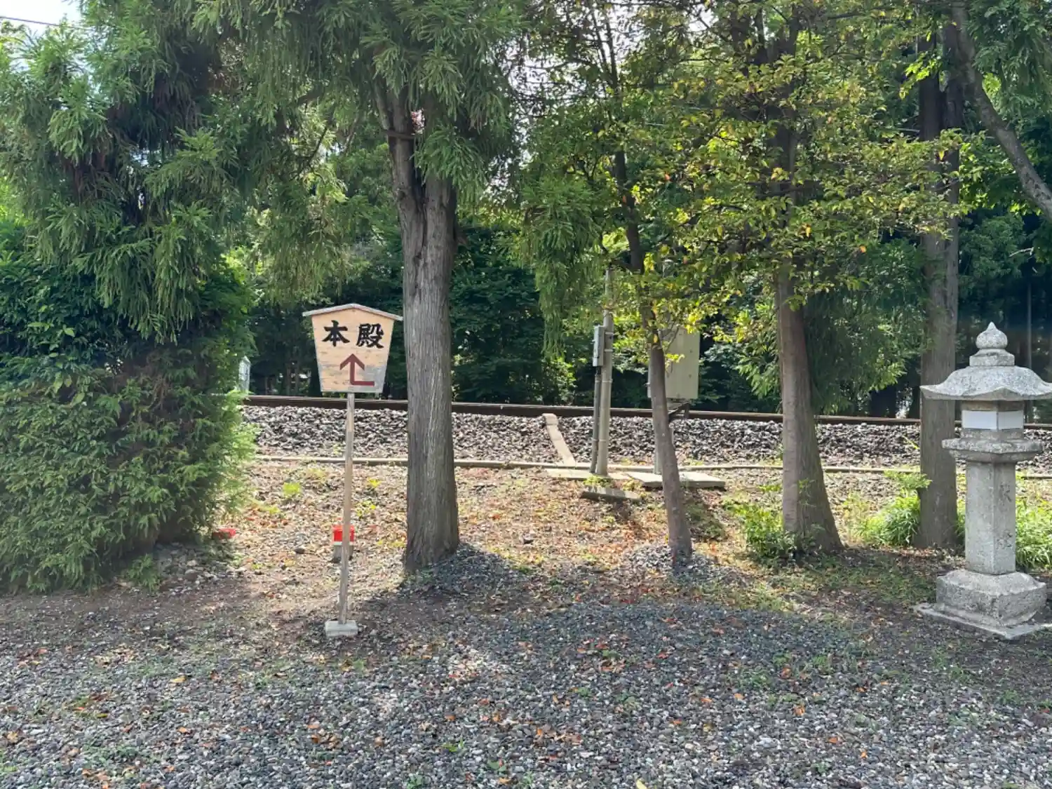 本殿への案内の看板。線路が走ってます。