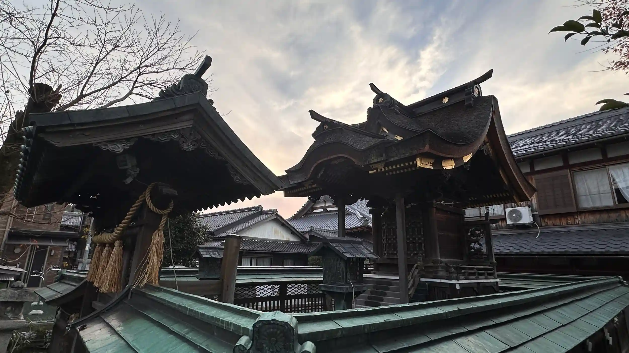 近くには城址が2カ所その真ん中に鎮座されています 〔本殿〕1間社流造千鳥破風唐破風付 小さいながらも立派な本殿です、境内には本殿両脇に 巨樹があります、途中で折れたような感じですが、新しい枝が育っているようです