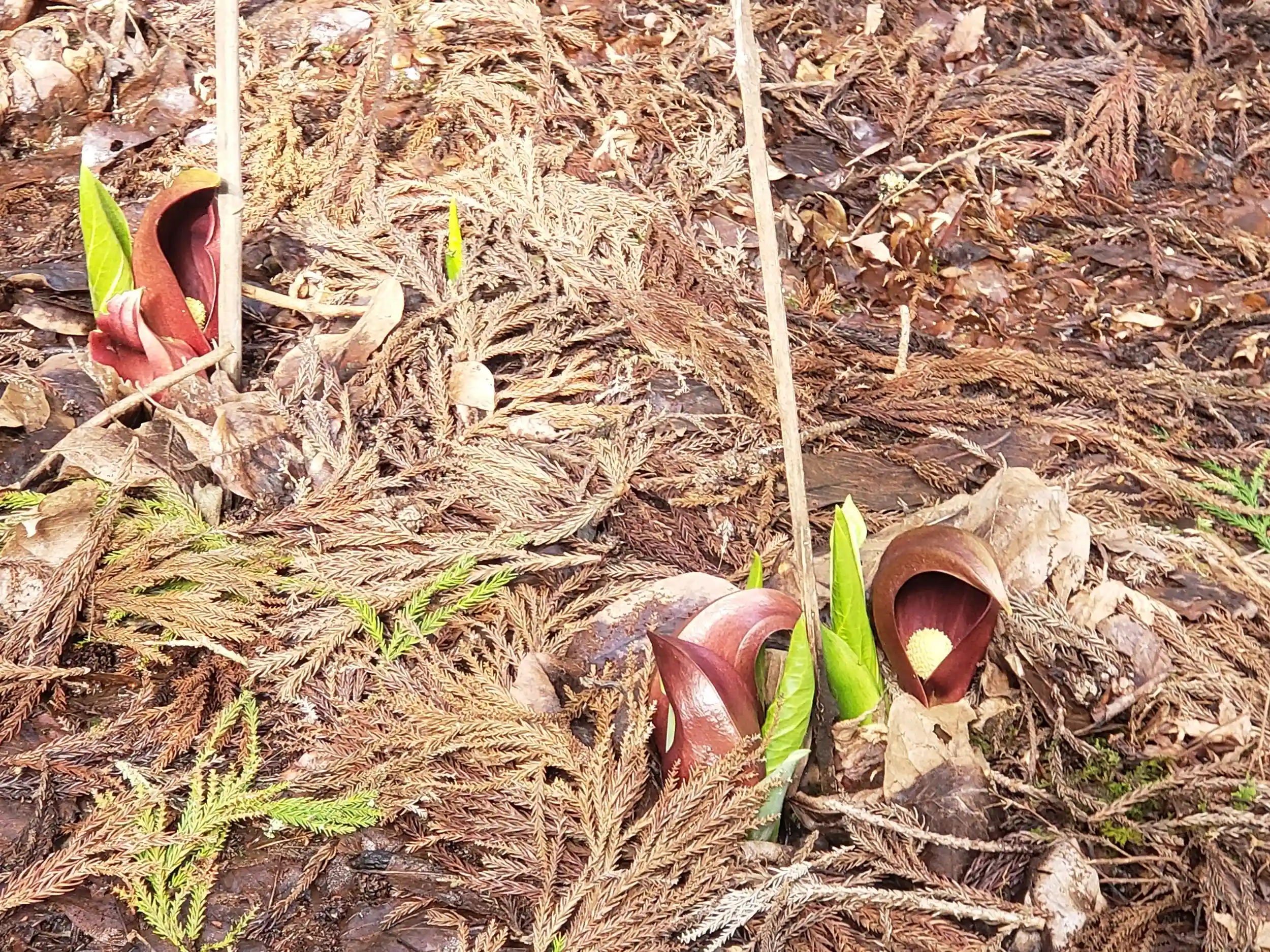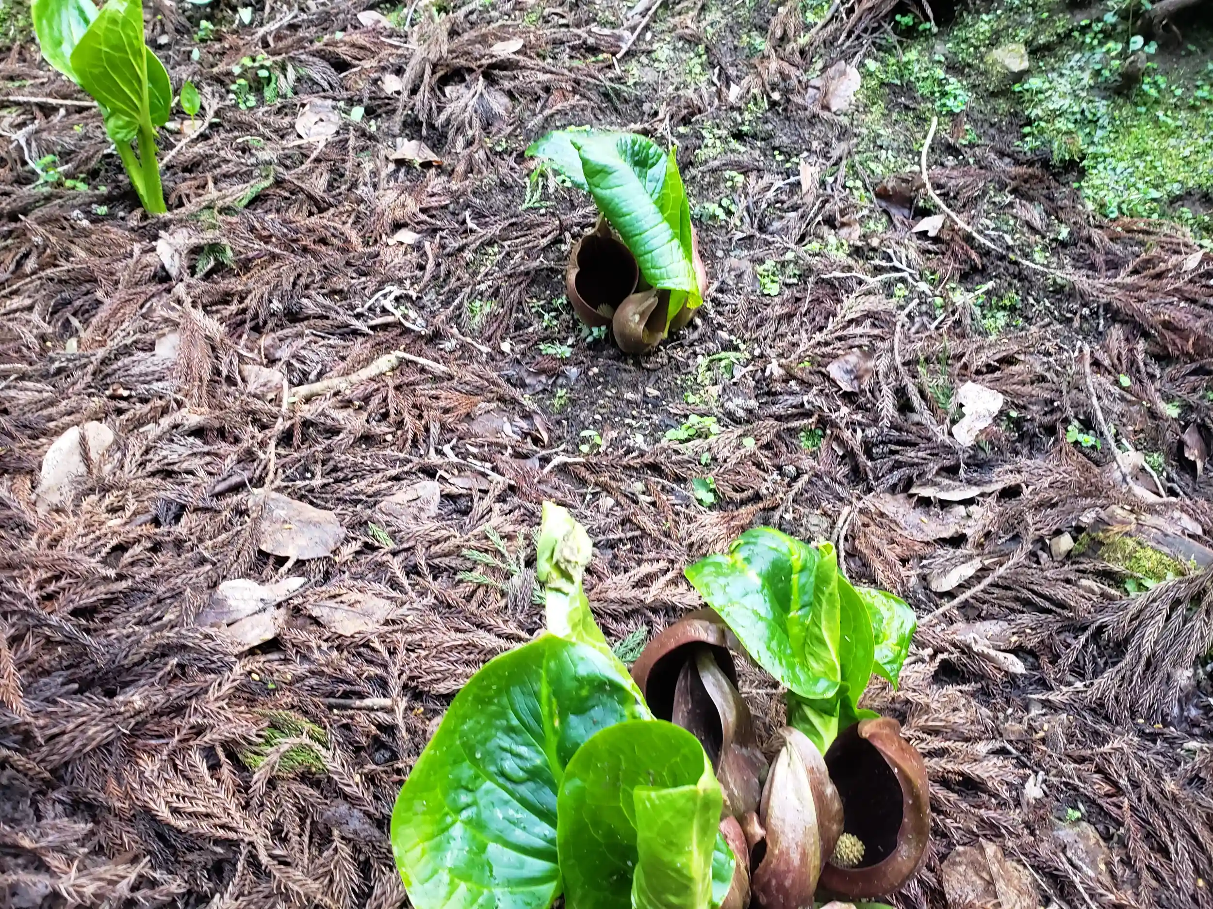 2か月前には、雪に埋もれていましたが今回は、ちょっと遅かったのか坐禅草が開いていました。本当は雪をかぶっているほうがよかったのですが