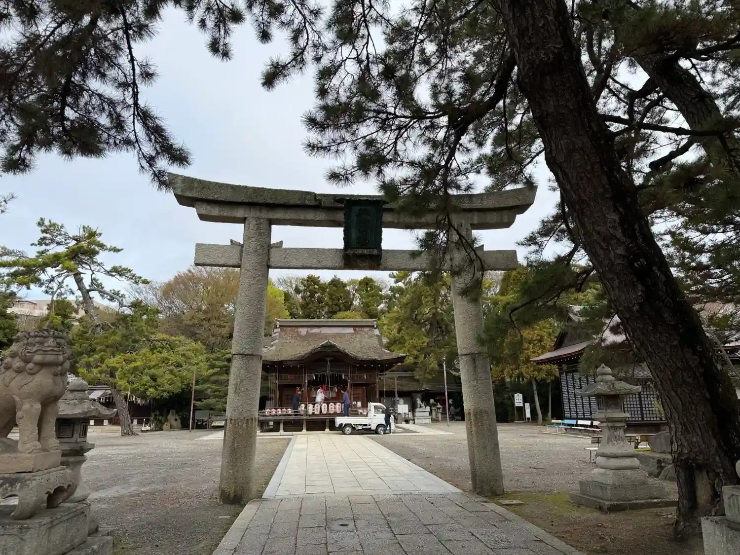 その前に こちら長浜八幡宮さんにお参りです。境内に車を停めさせていただけました。