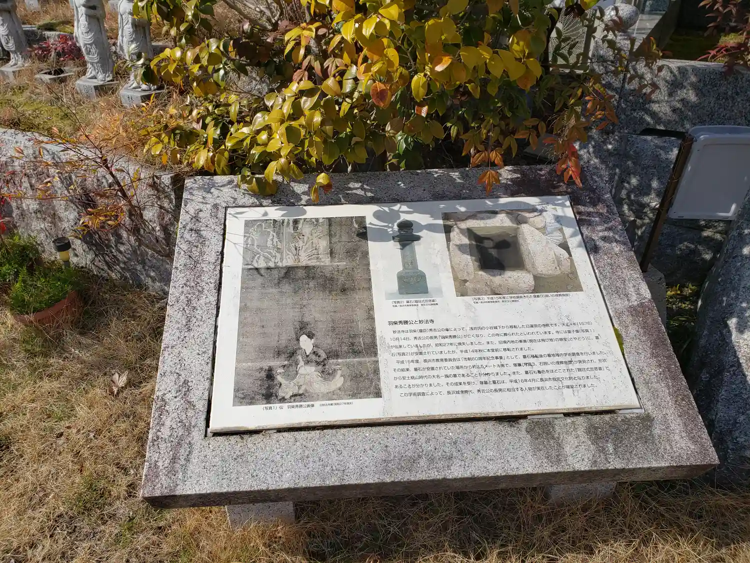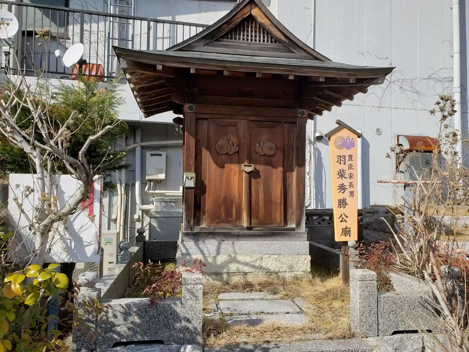 門だけ残っているお寺さんでして、羽柴(豊臣)秀勝のお墓以外社務所しかないんですよ。
