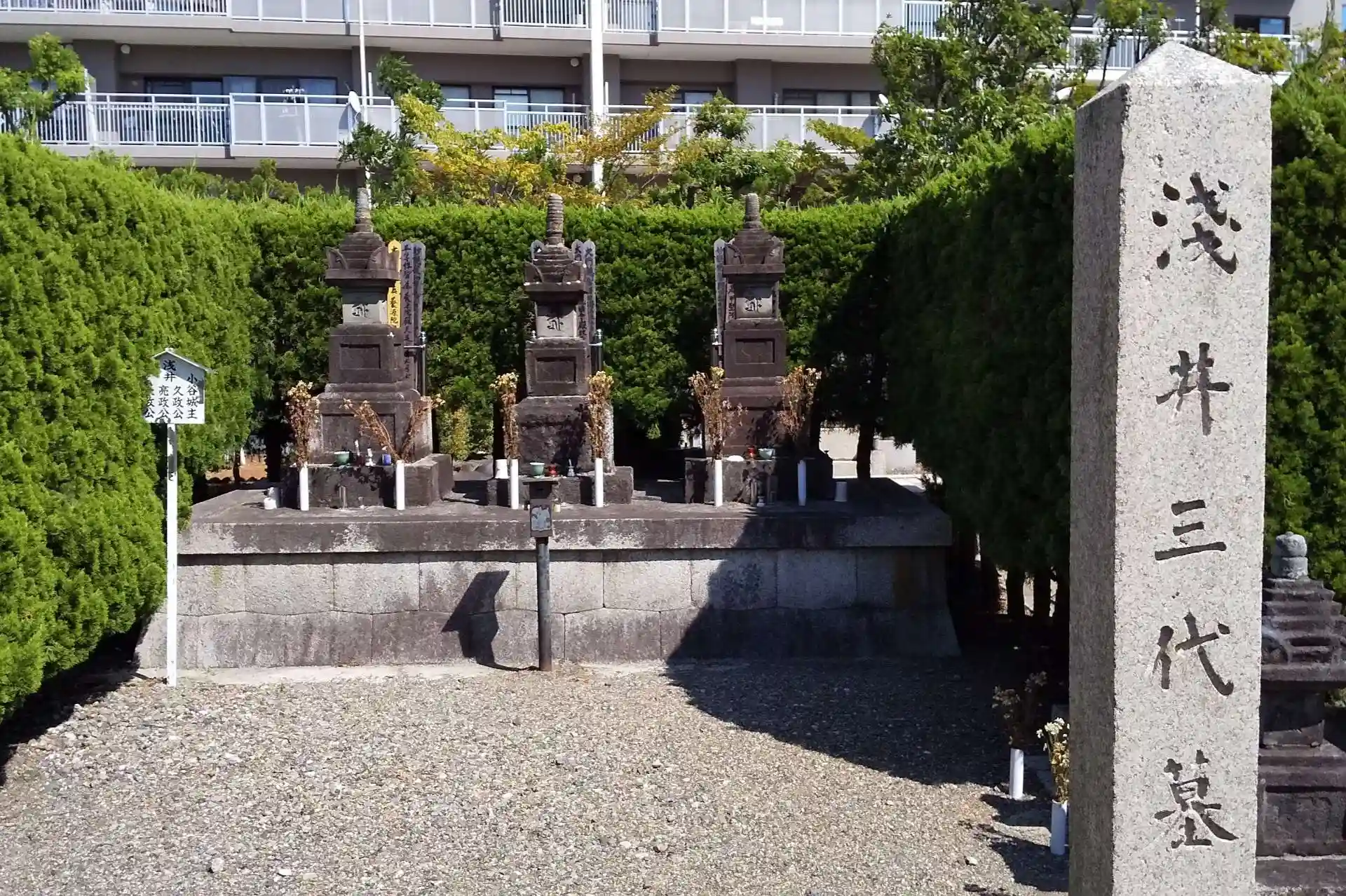 境内に浅井三代(亮政、久政、長政)の墓が、本堂内に長政お市の木造などがあります🙏