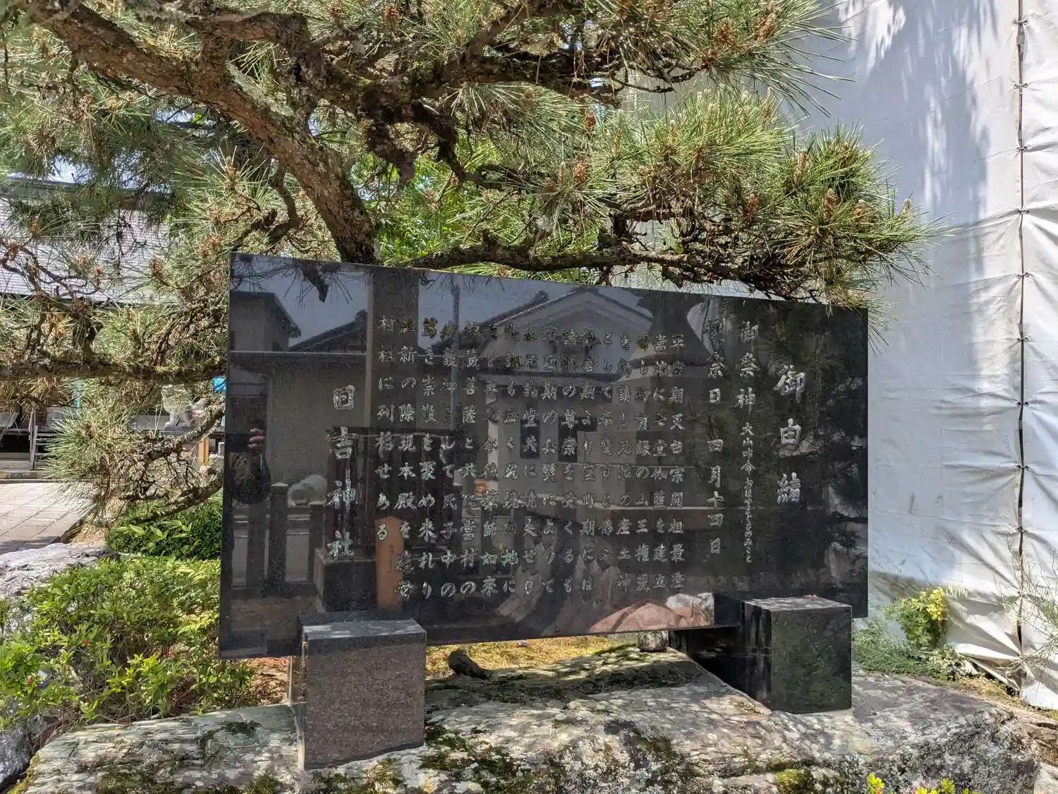 扁額がまだ新しいです、当社は集落の真ん中に鎮座されています ご由緒 浅井三代も崇敬篤く、松、欅を植…