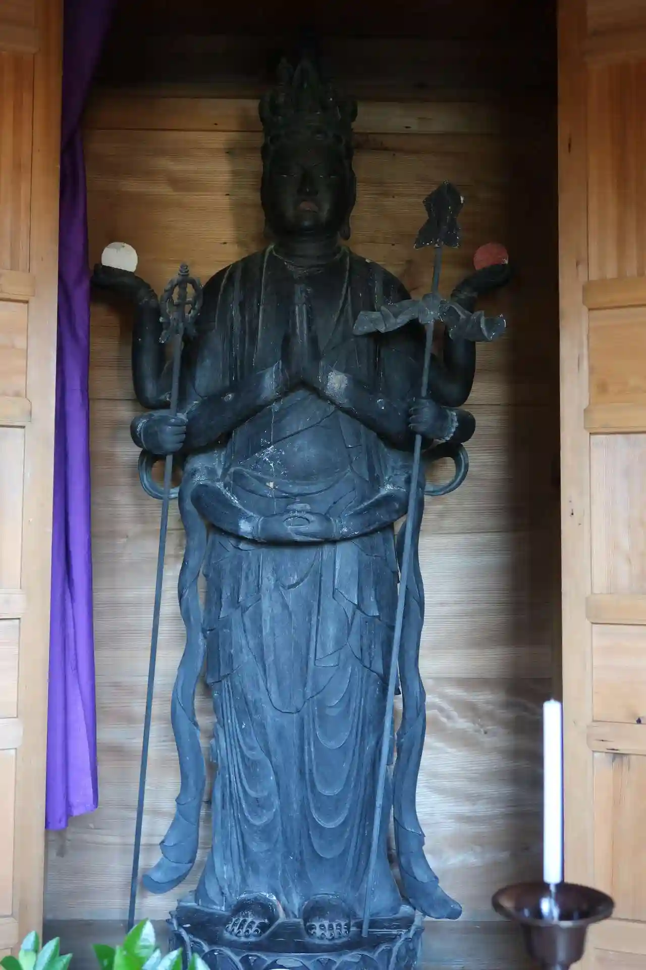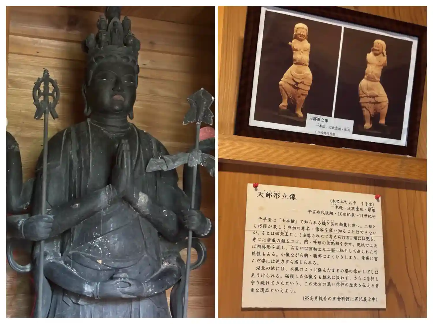 目線の高さによって観音様の表情が変わります。天部像は今は歴史博物館に収蔵されています。