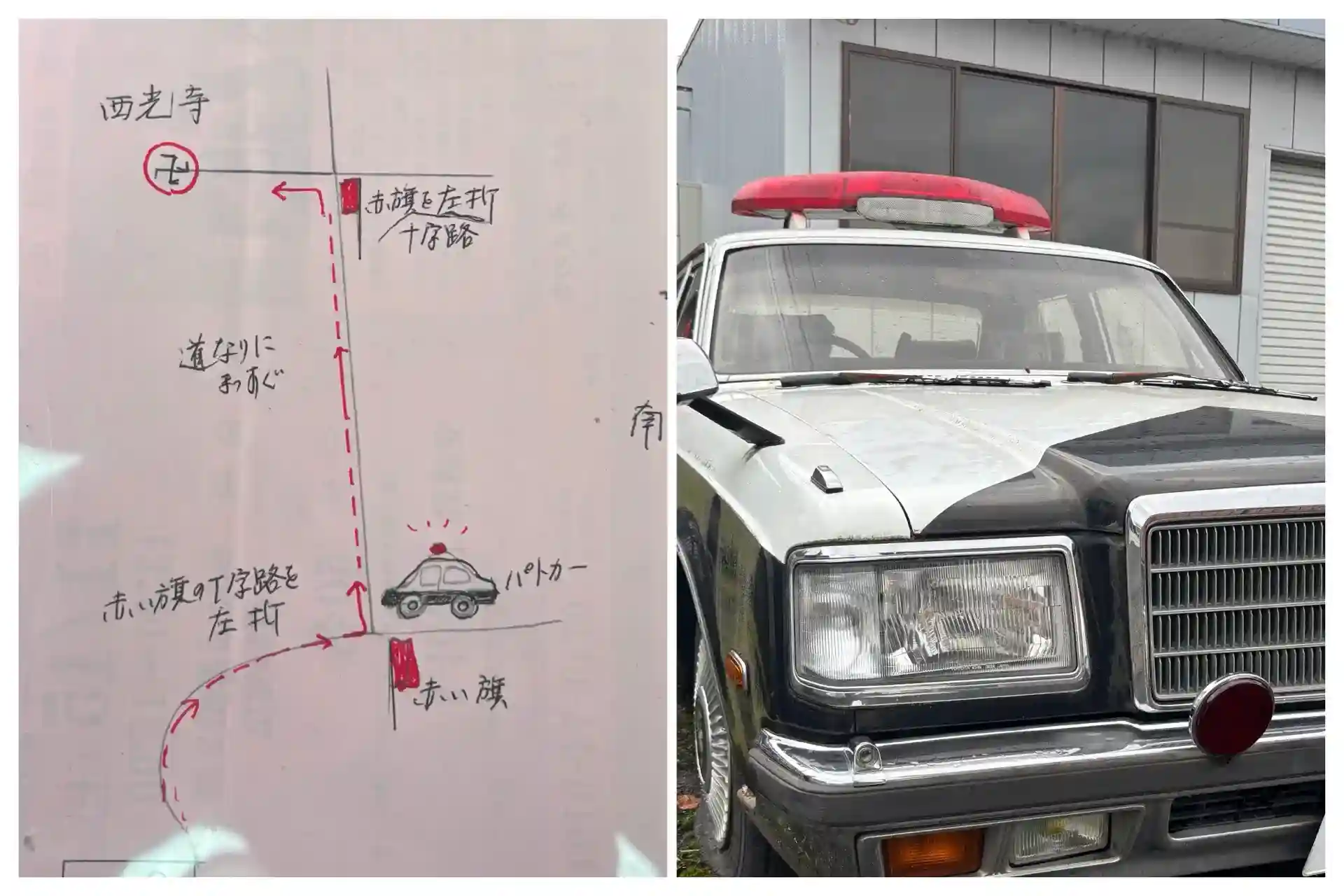 ガイドさんが書いてくれた地図と目印になってる動いてないパトカーww