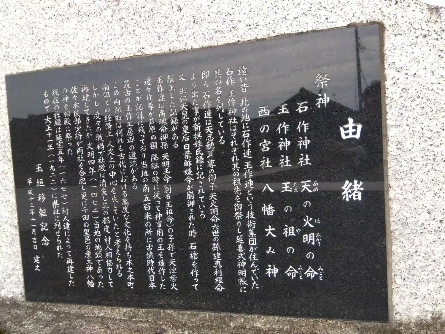 | ご祭神 | 天火明命(石作神社) 玉祖命(玉作神社) |