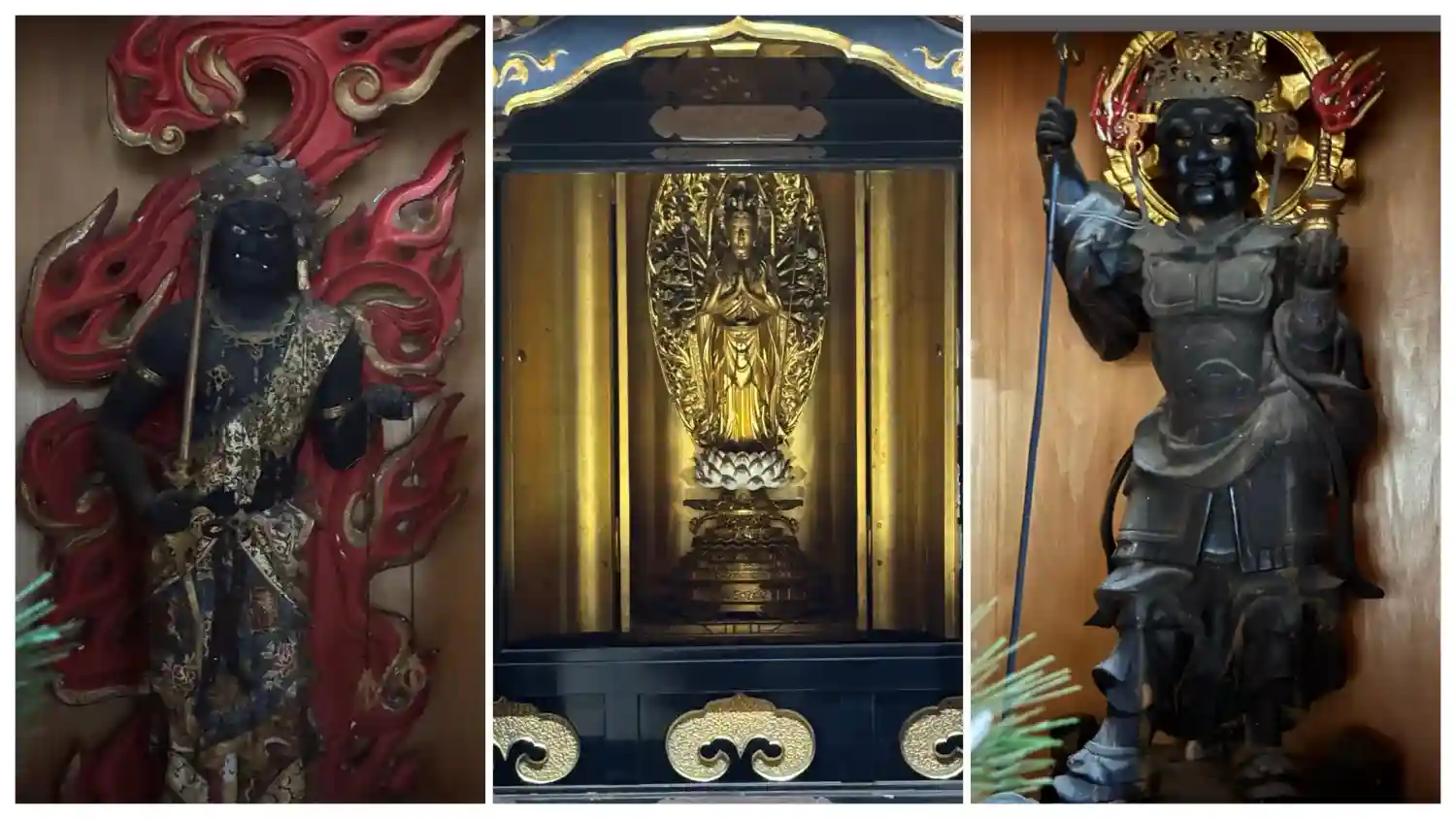 中央に千手観音、脇に毘沙門天と不動明王。つよつよな組み合わせですねー。