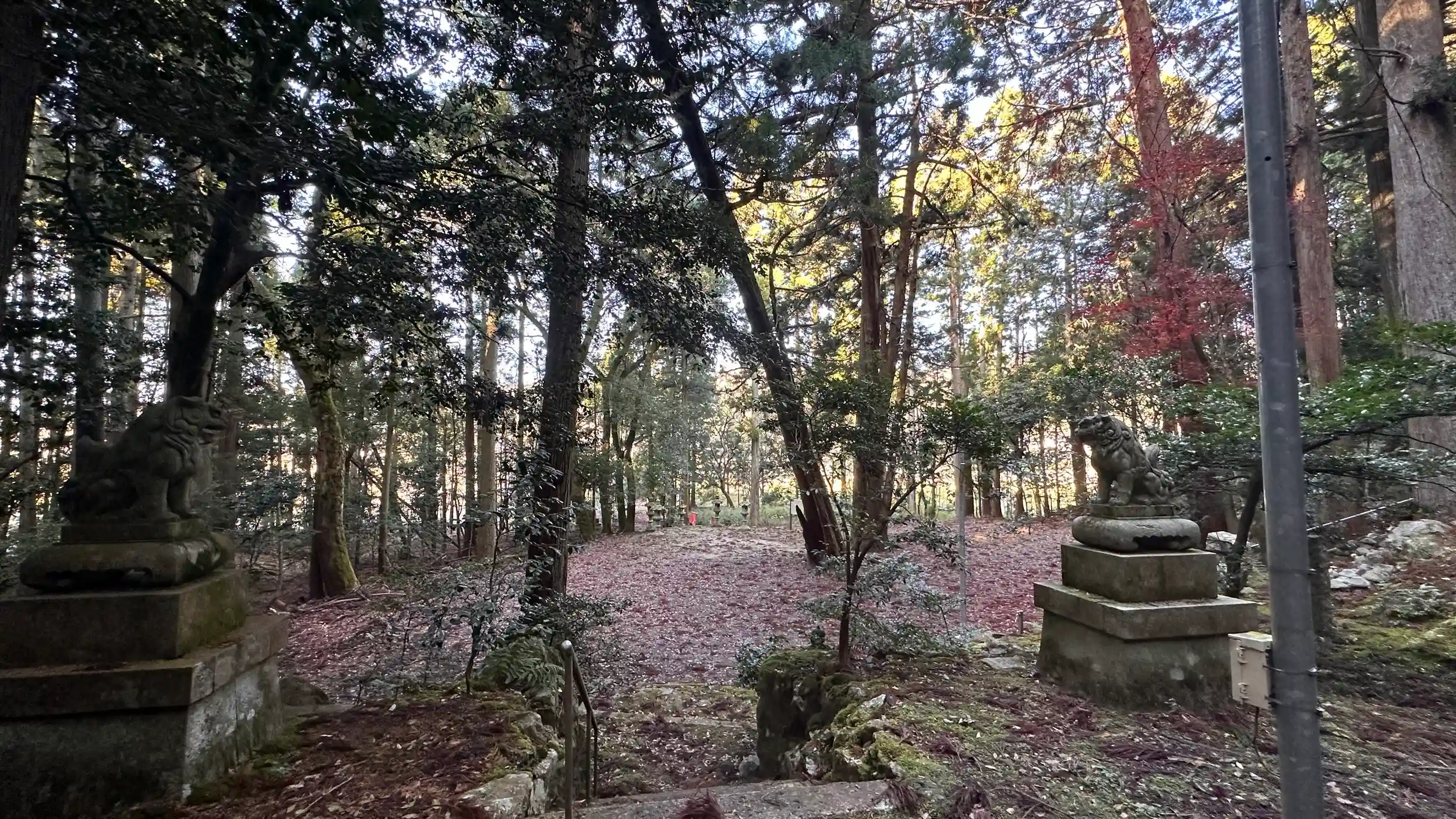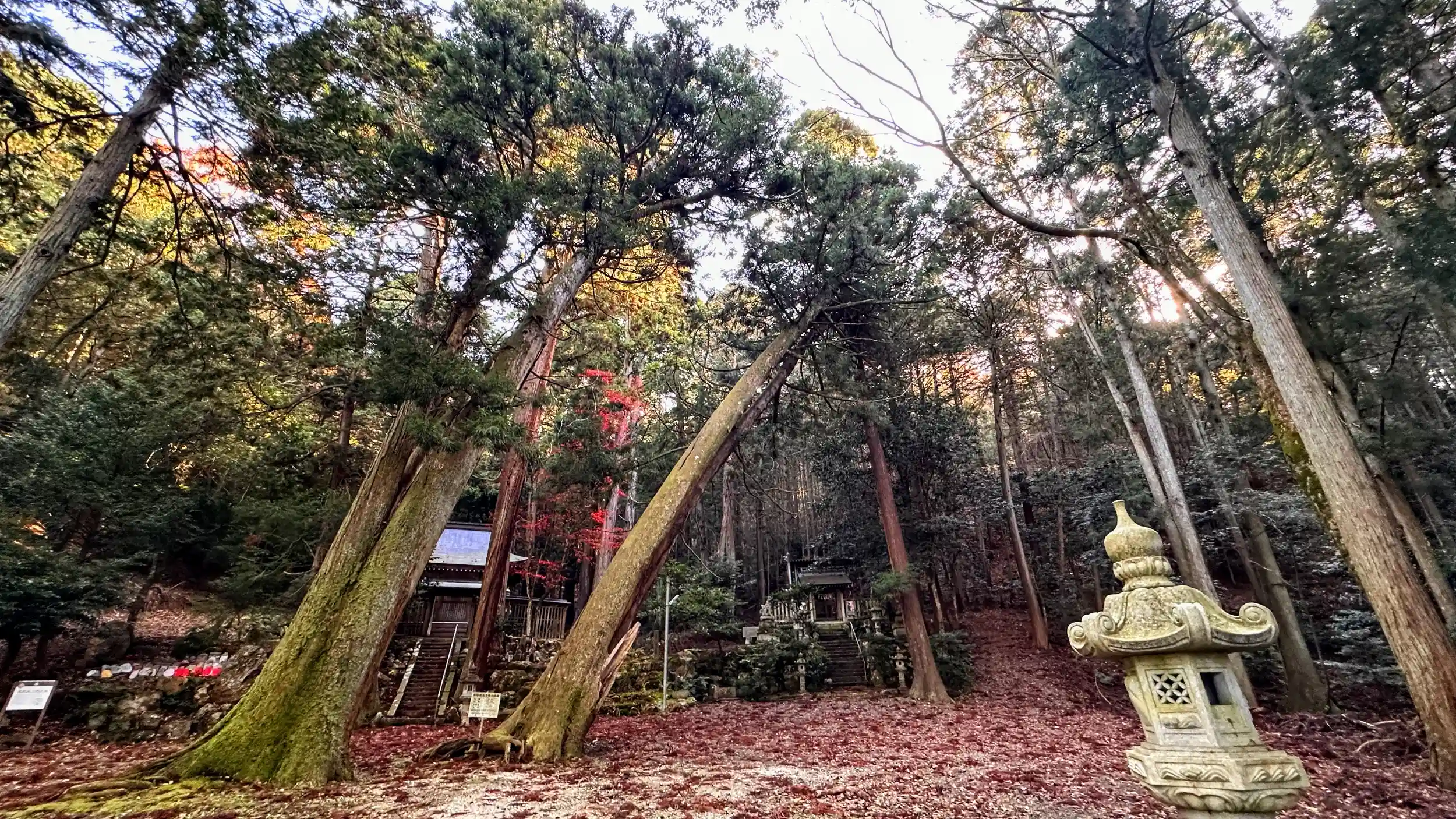 斜めに生えている 杉の巨樹が印象的 幹回り5m 参道の階段にも杉の巨樹があります 本殿は 一間社流造 ここから徒歩6分の所に「浅井氏三代の塚」があります