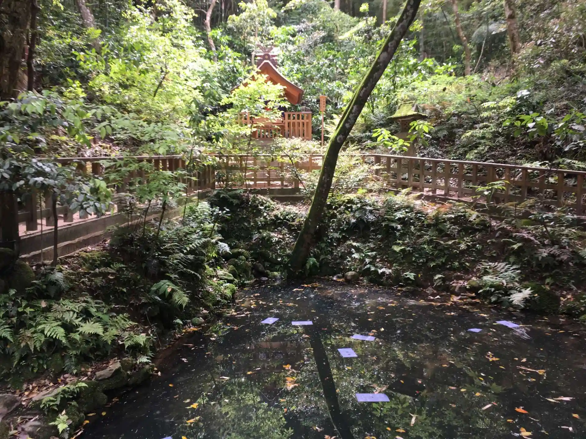 境内の裏に鏡の池と呼ばれる池がある。ここで行うのが縁占い。