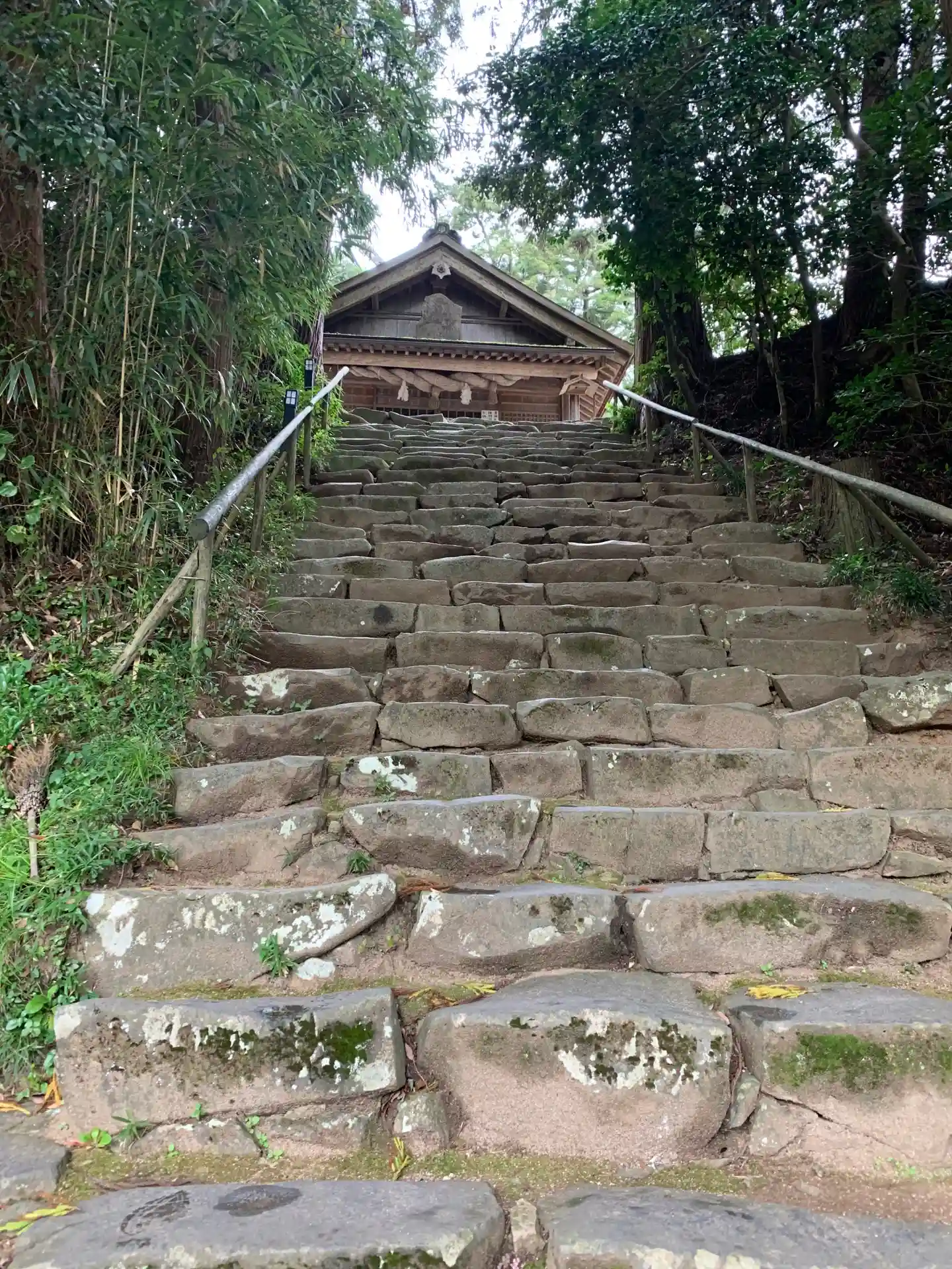 自然石を積み上げた石段を登った先にある本殿は、現存する最古の大社造りであり、国宝にも指定されているそうです。