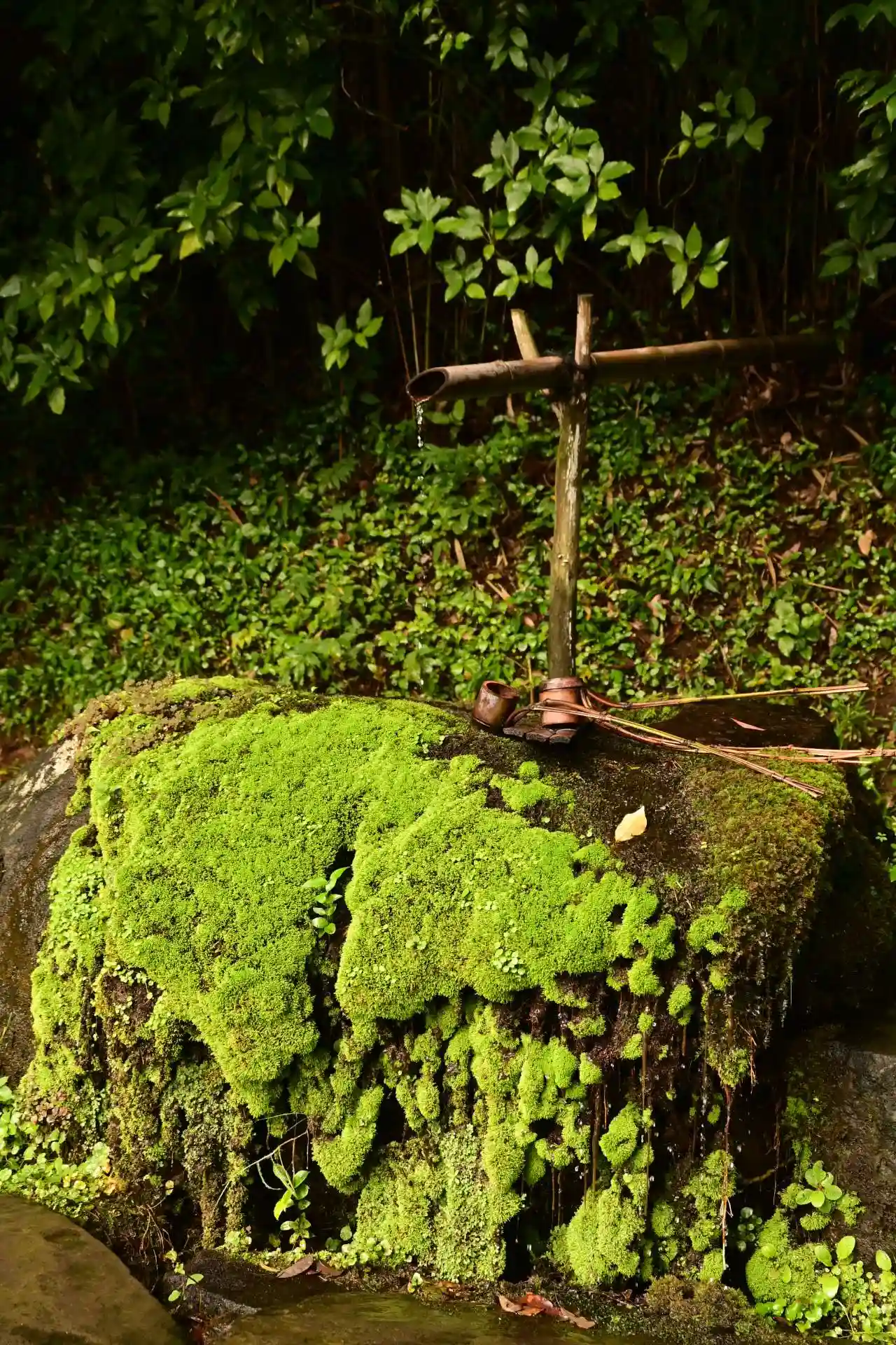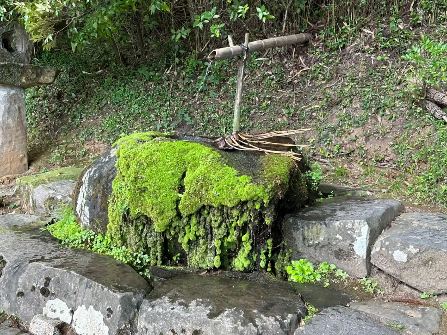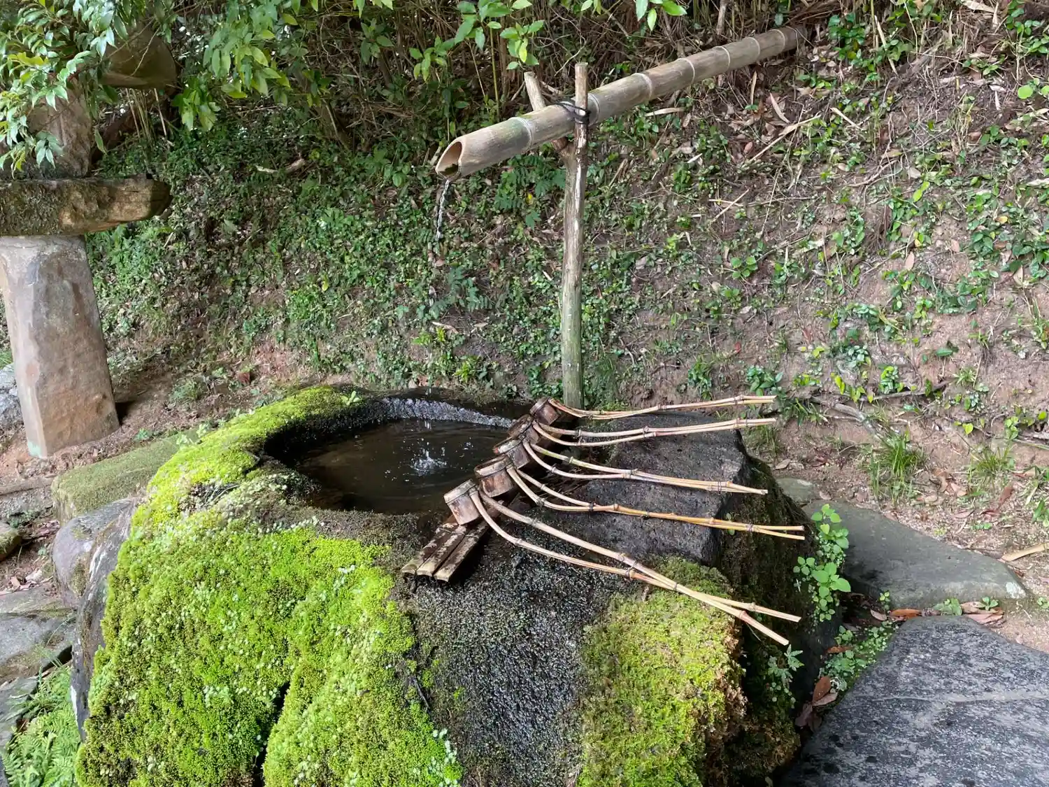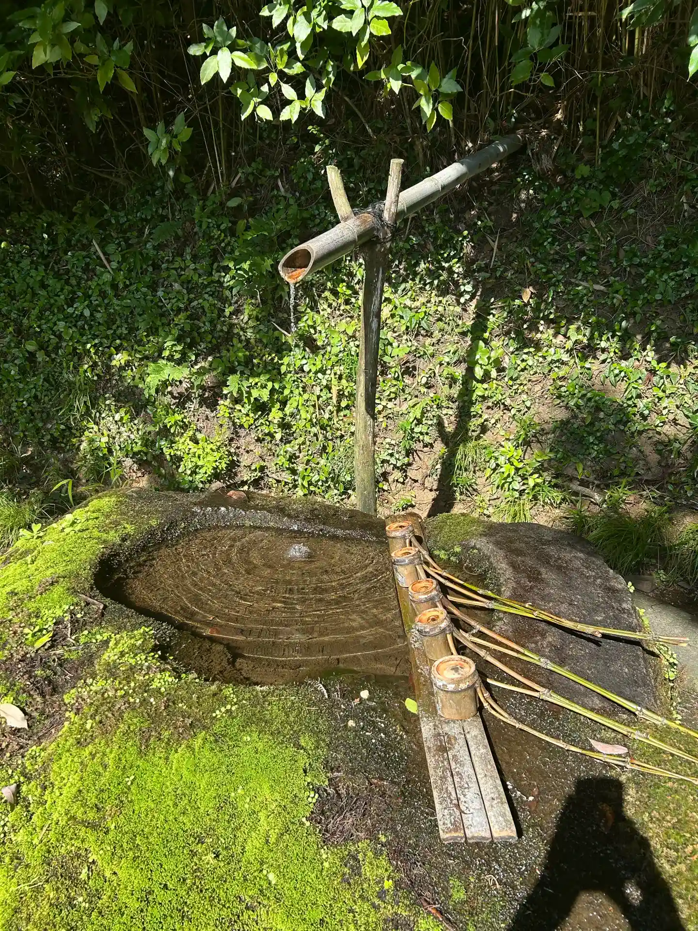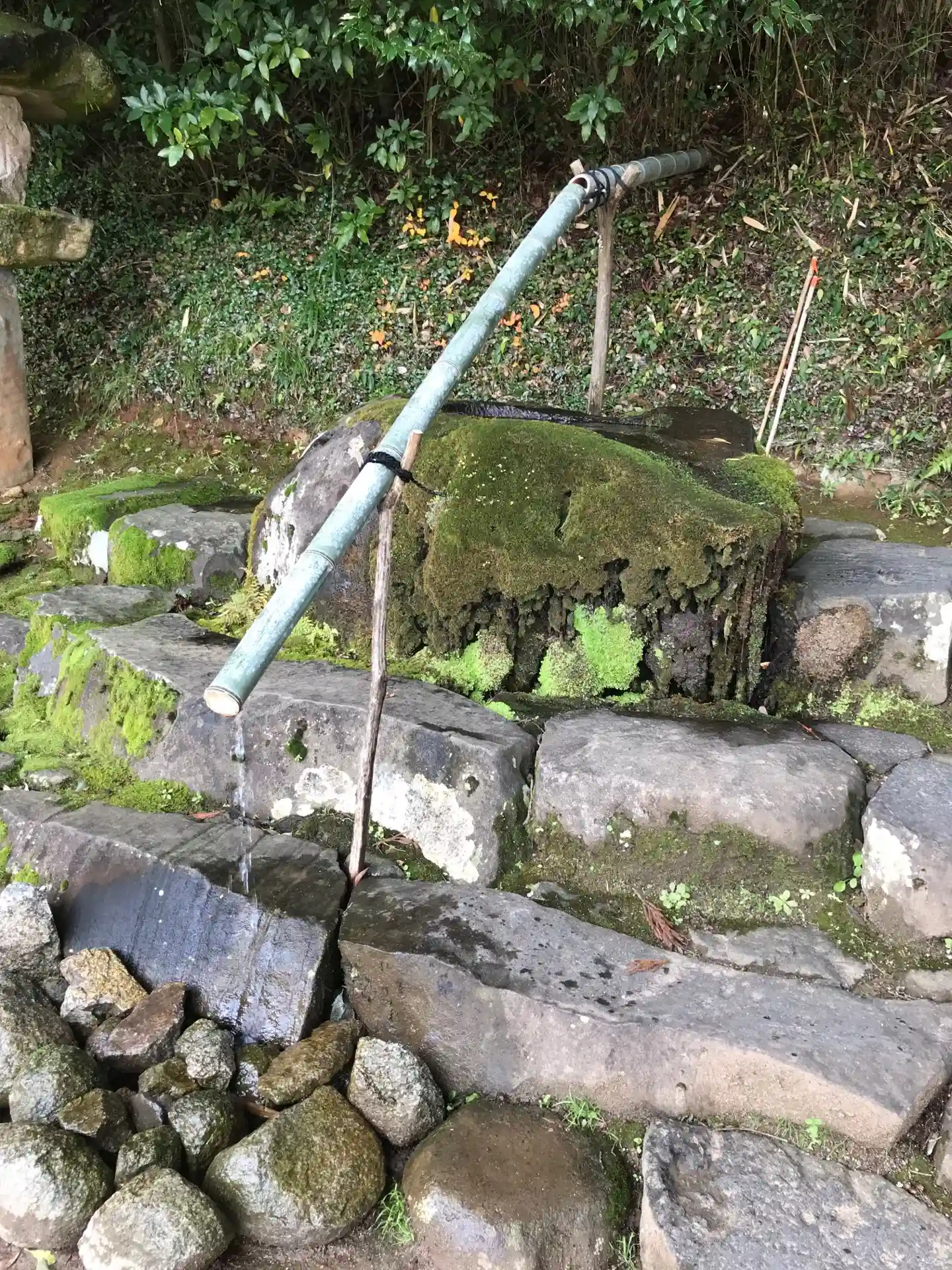 手水舎だ!竹が長っ!