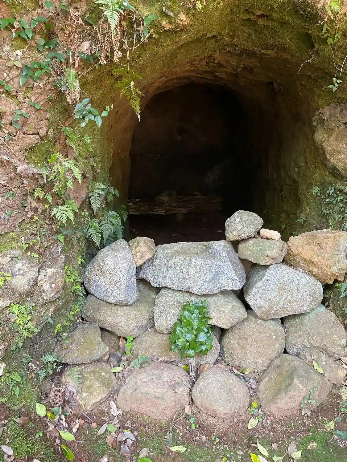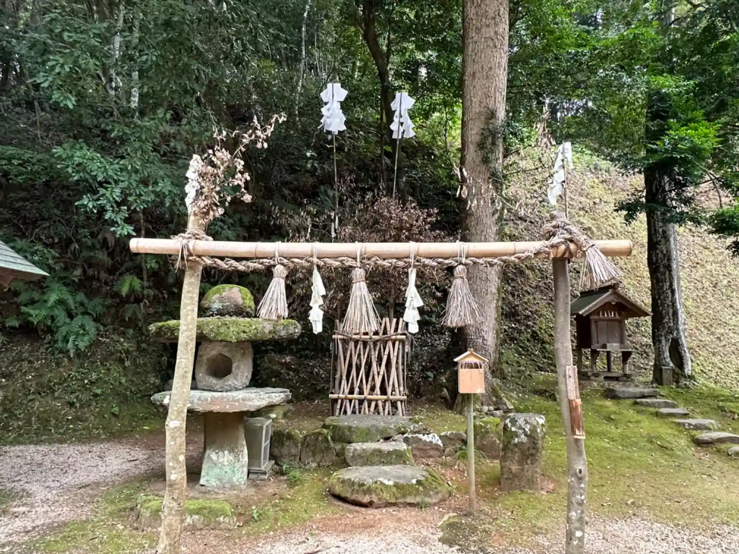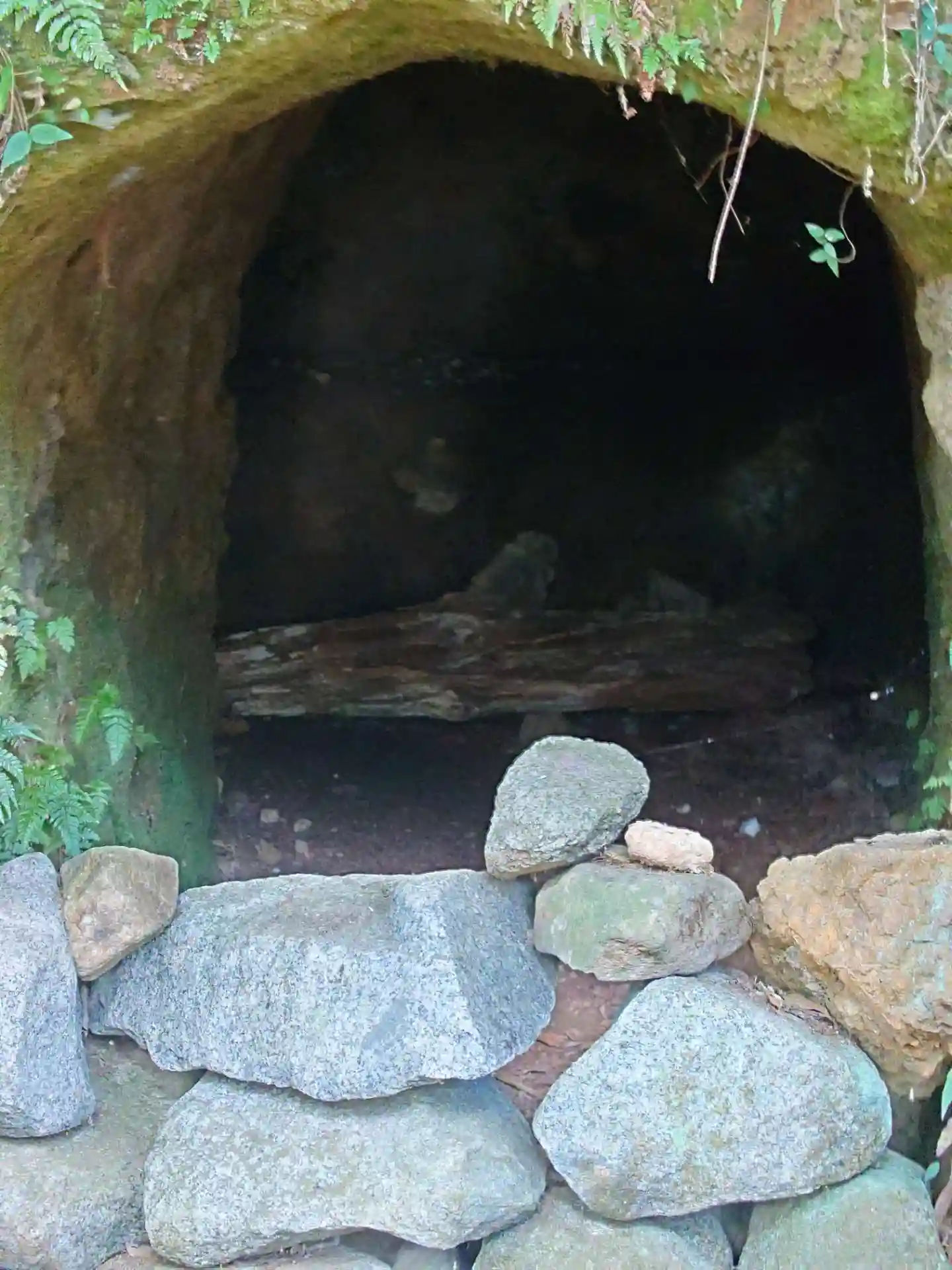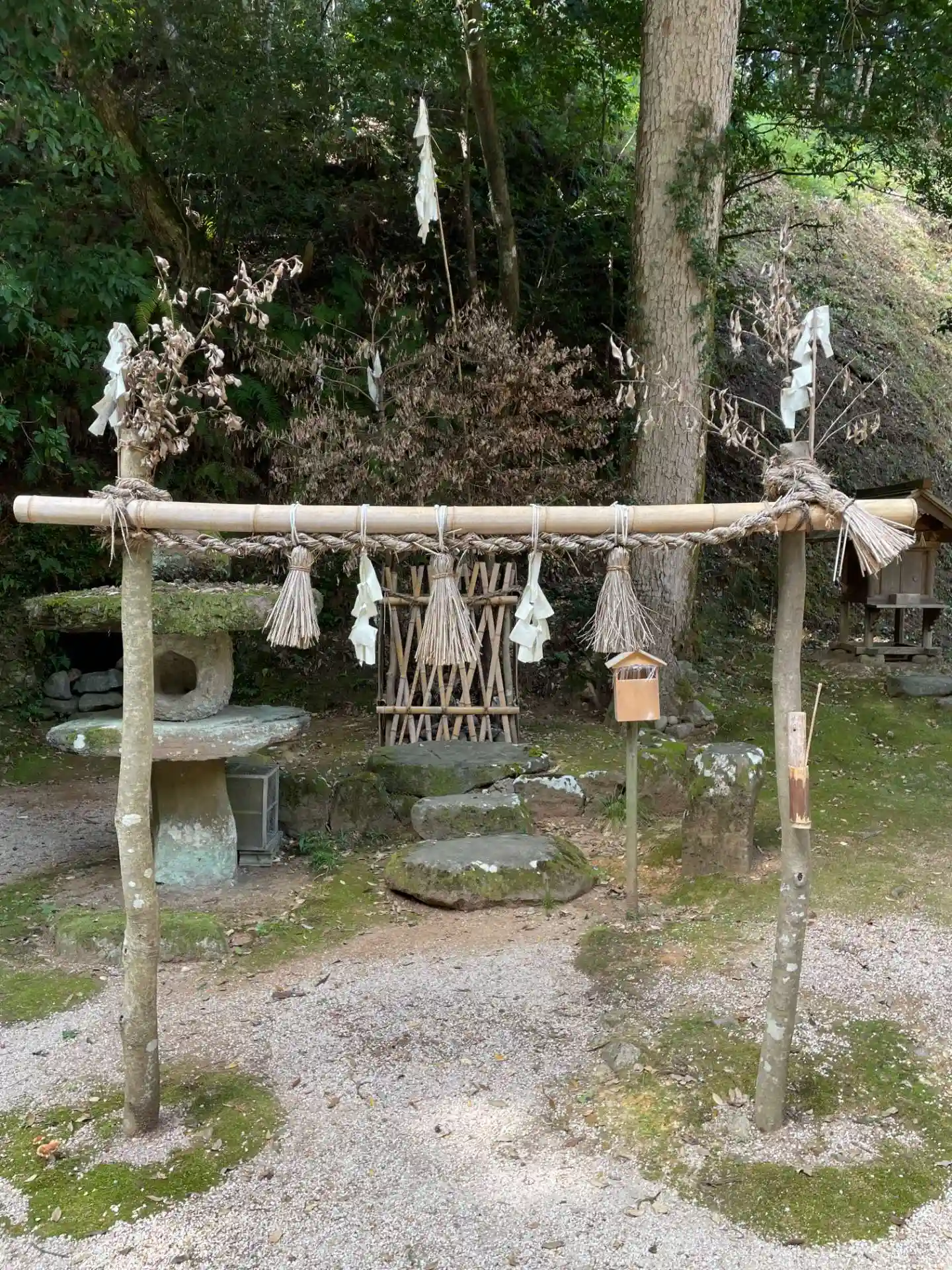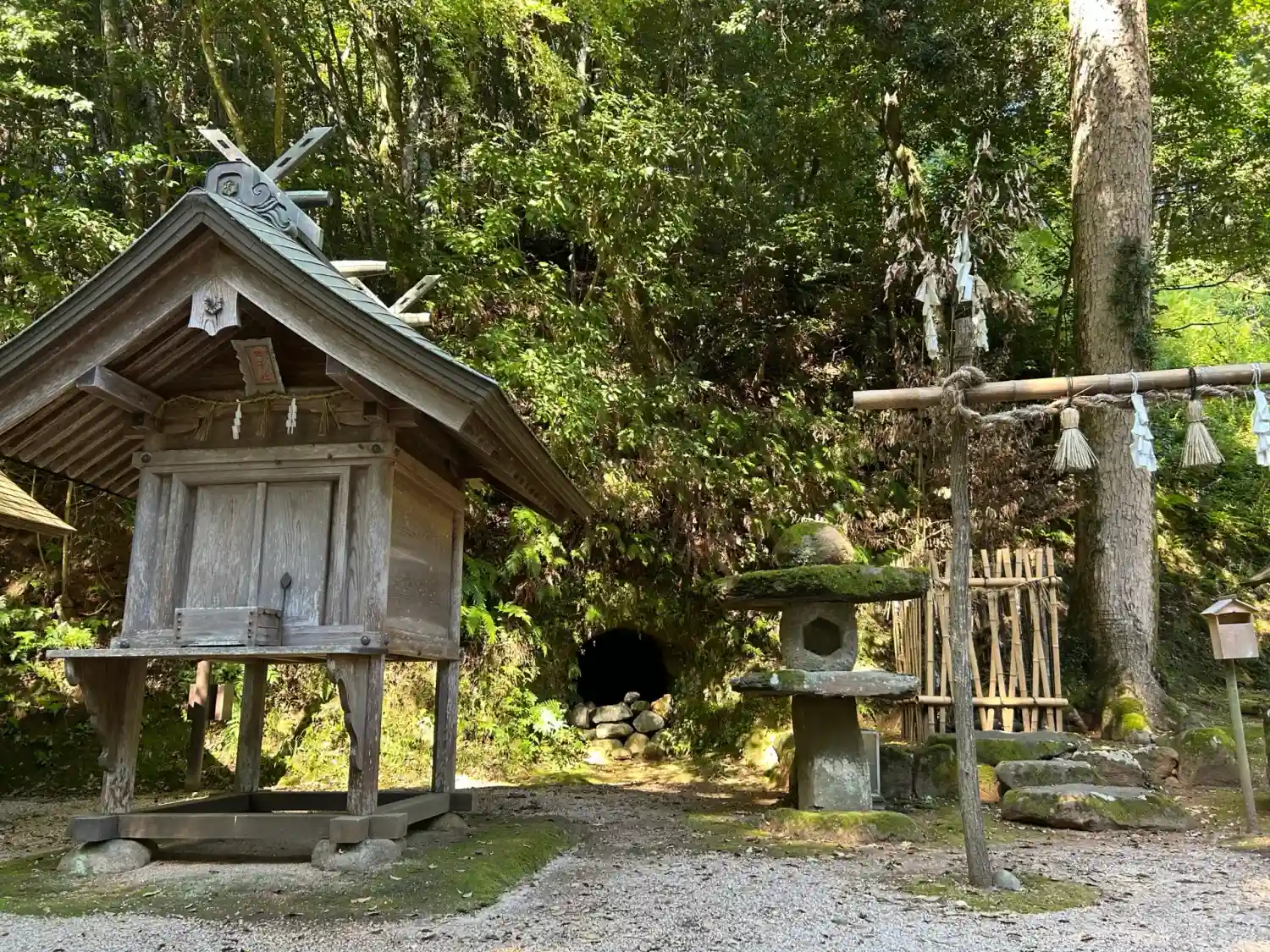 原始の鳥居と石灯籠に、洞穴。鎌倉の墳墓を思い出しますが、ここは神社ですから、あちらもまた祠なのかなと考えられます。