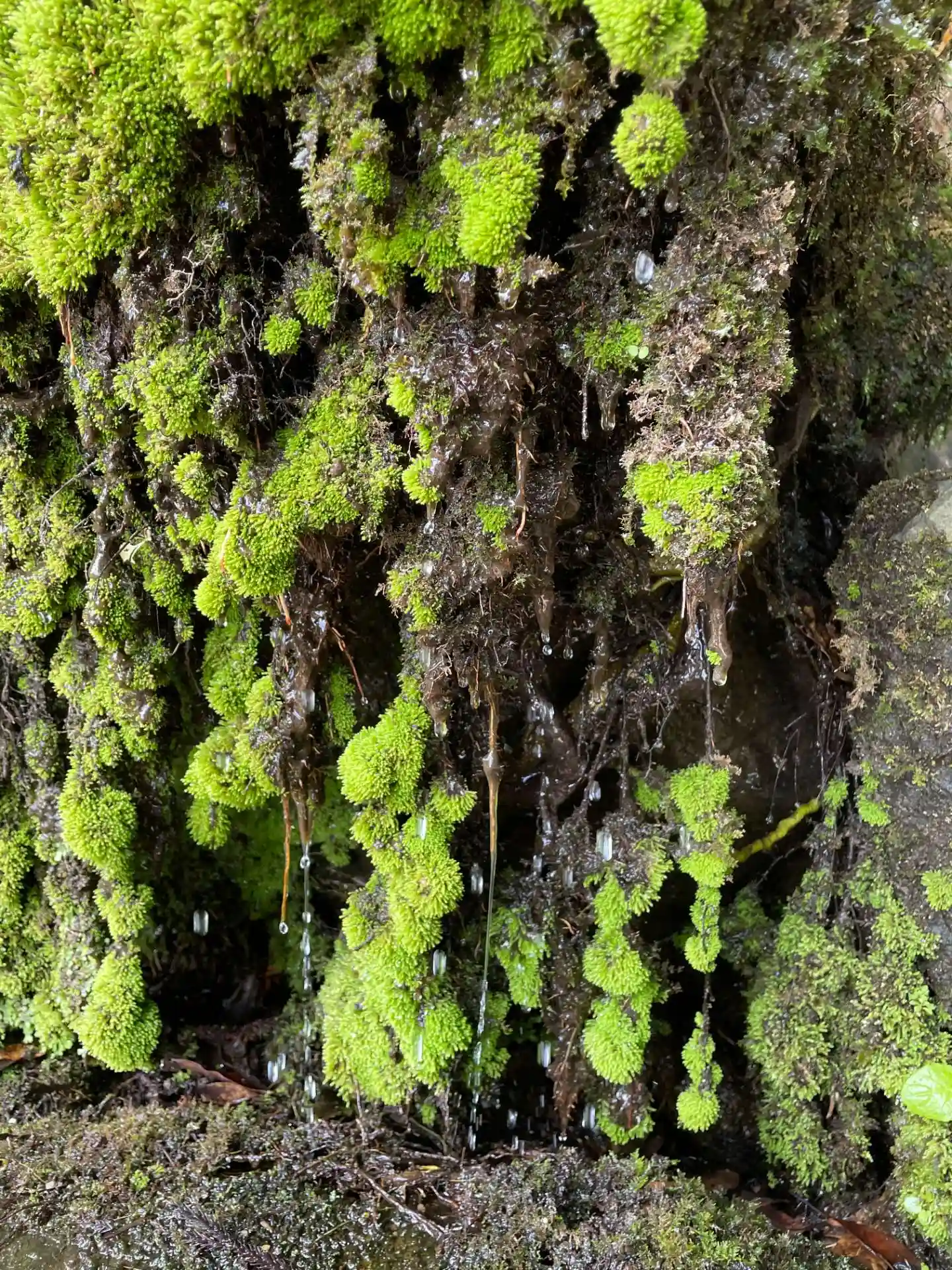 苔から滴る水滴