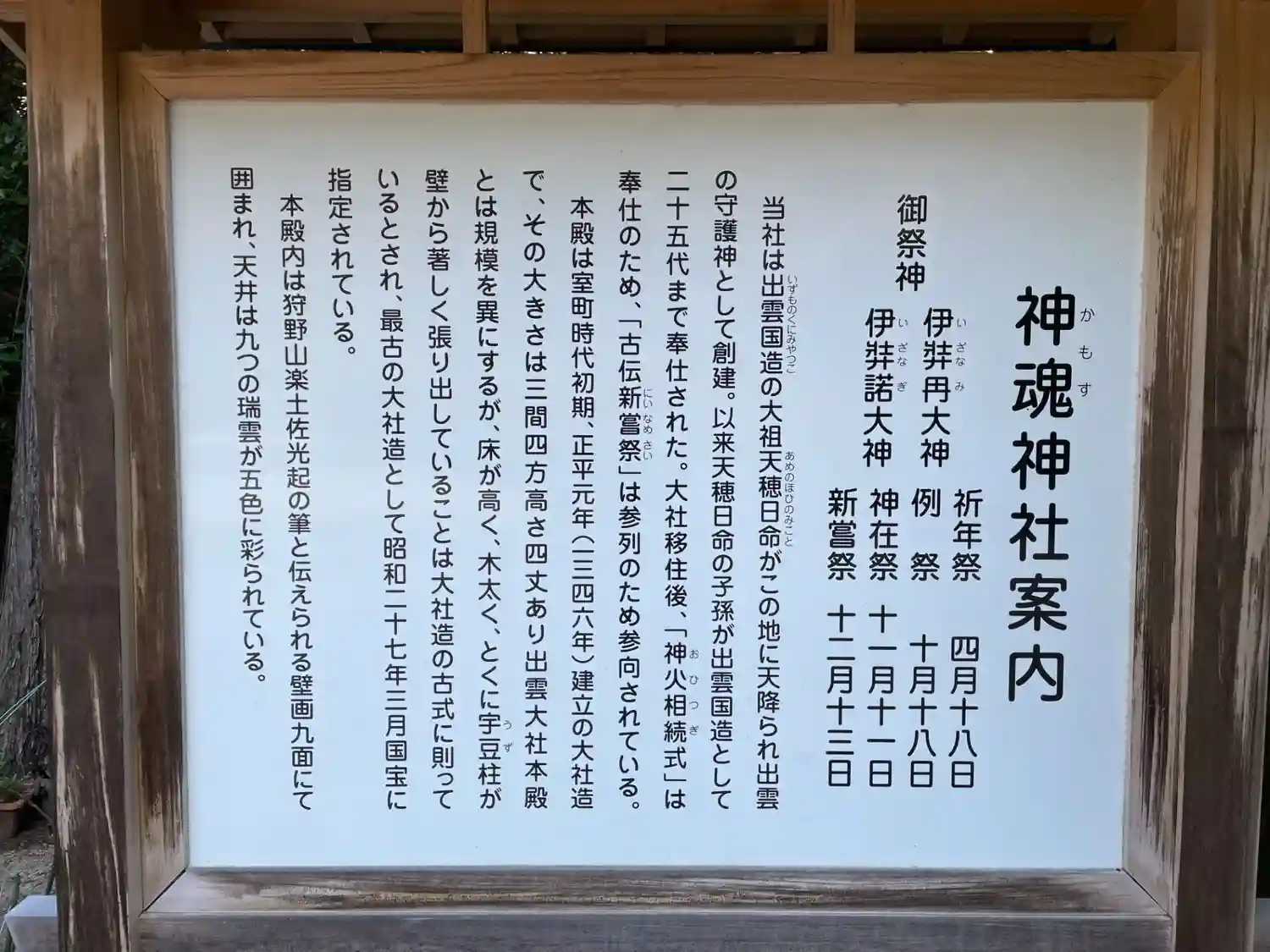 本殿の石板。神魂神社と書いてありました。