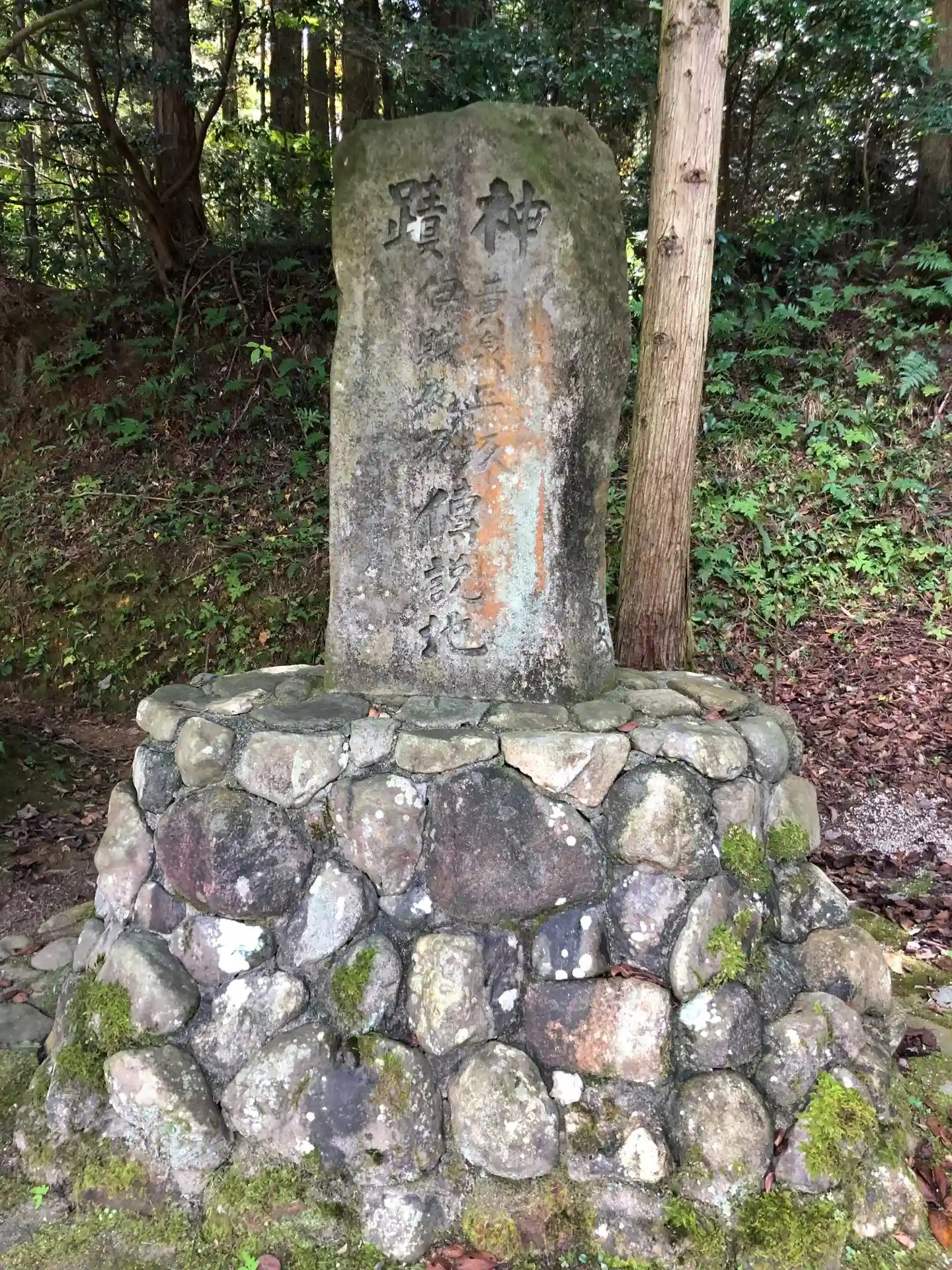 階段上の 左右の石柱に張ってある注連縄 原始の鳥居の形だそうです