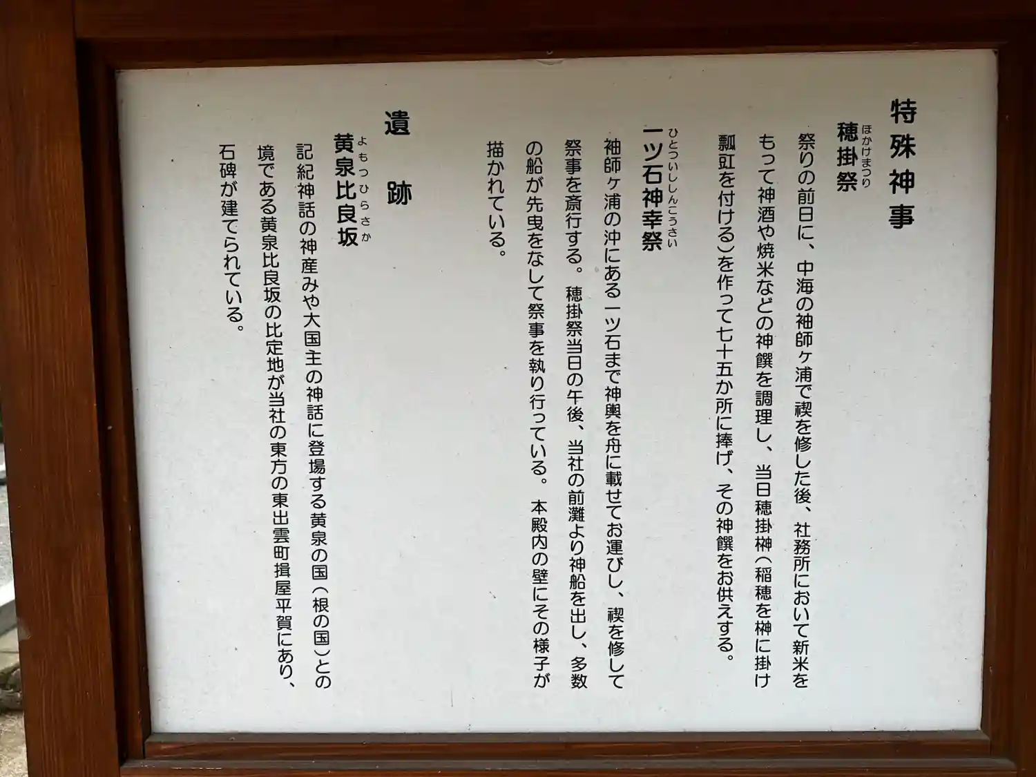 近くに黄泉の国の入口と言われる黄泉比良坂がある…