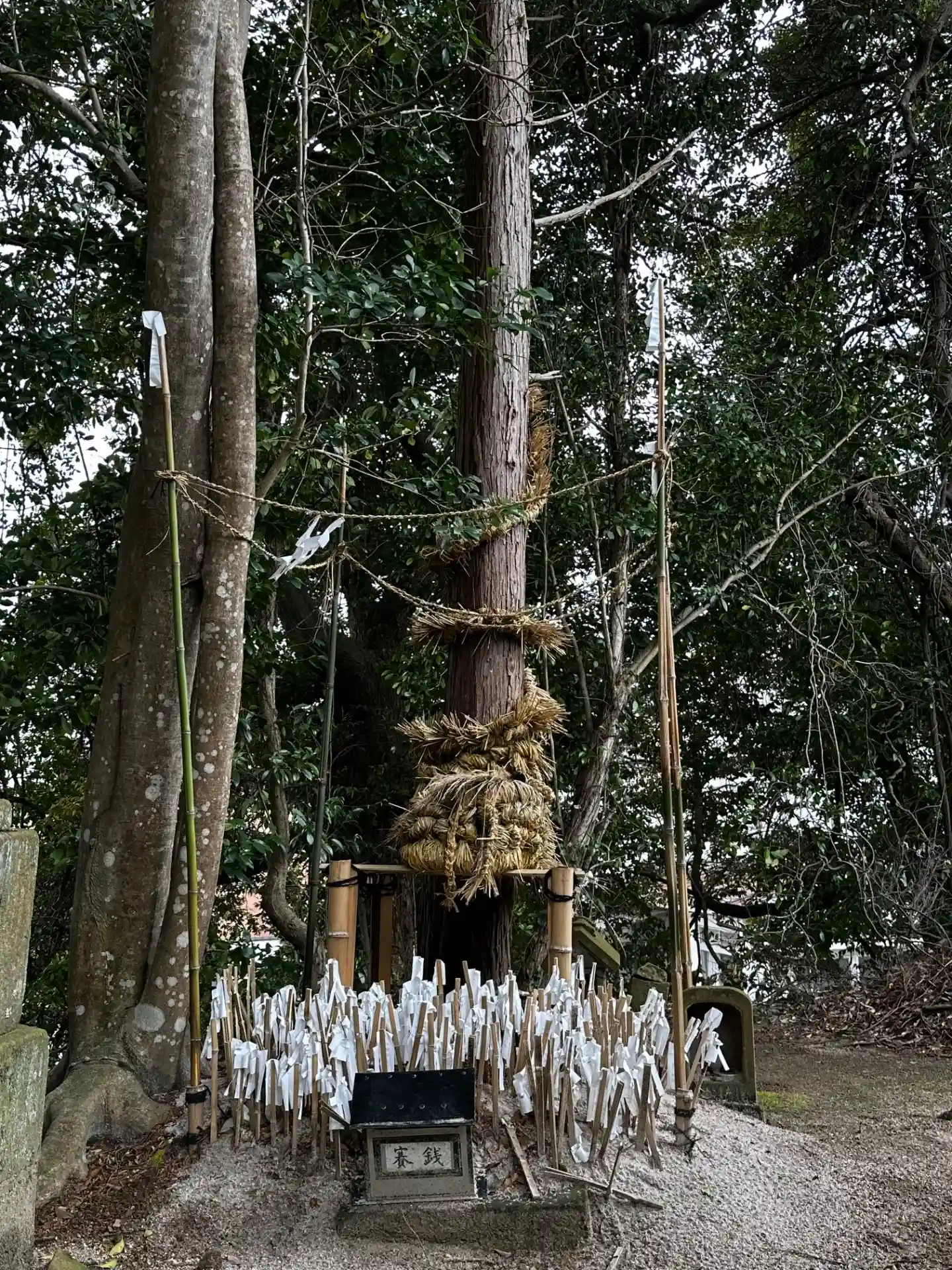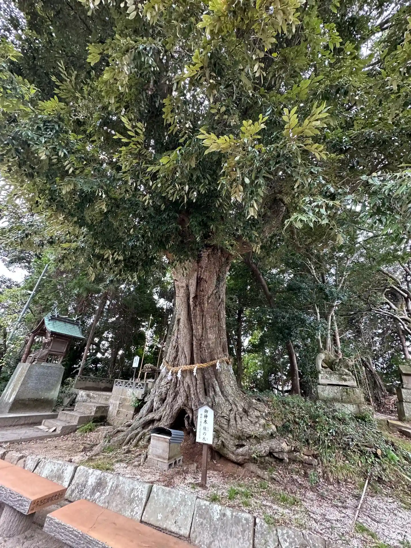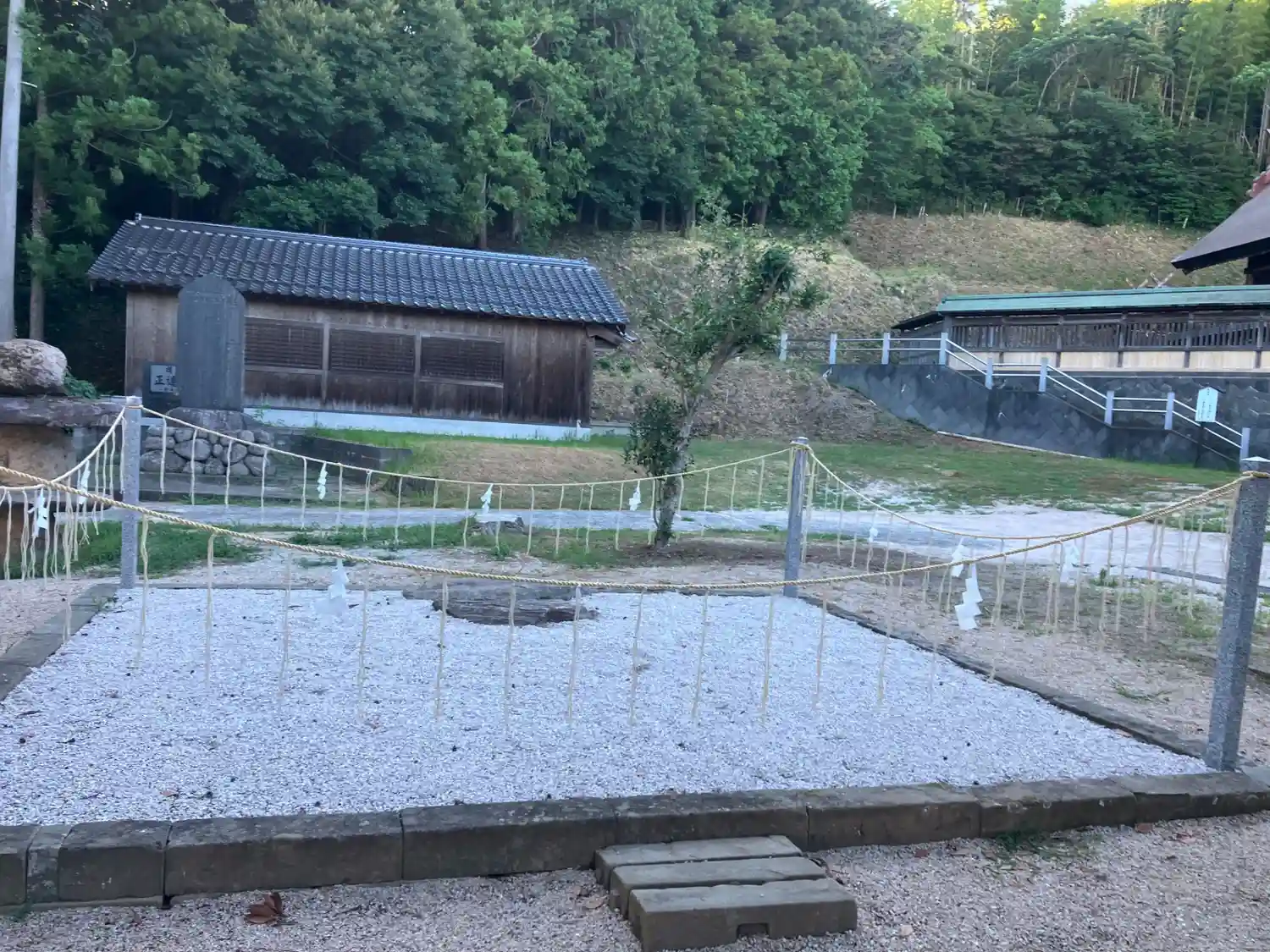 階段上の 左右の石柱に張ってある注連縄 原始の鳥居の形だそうです