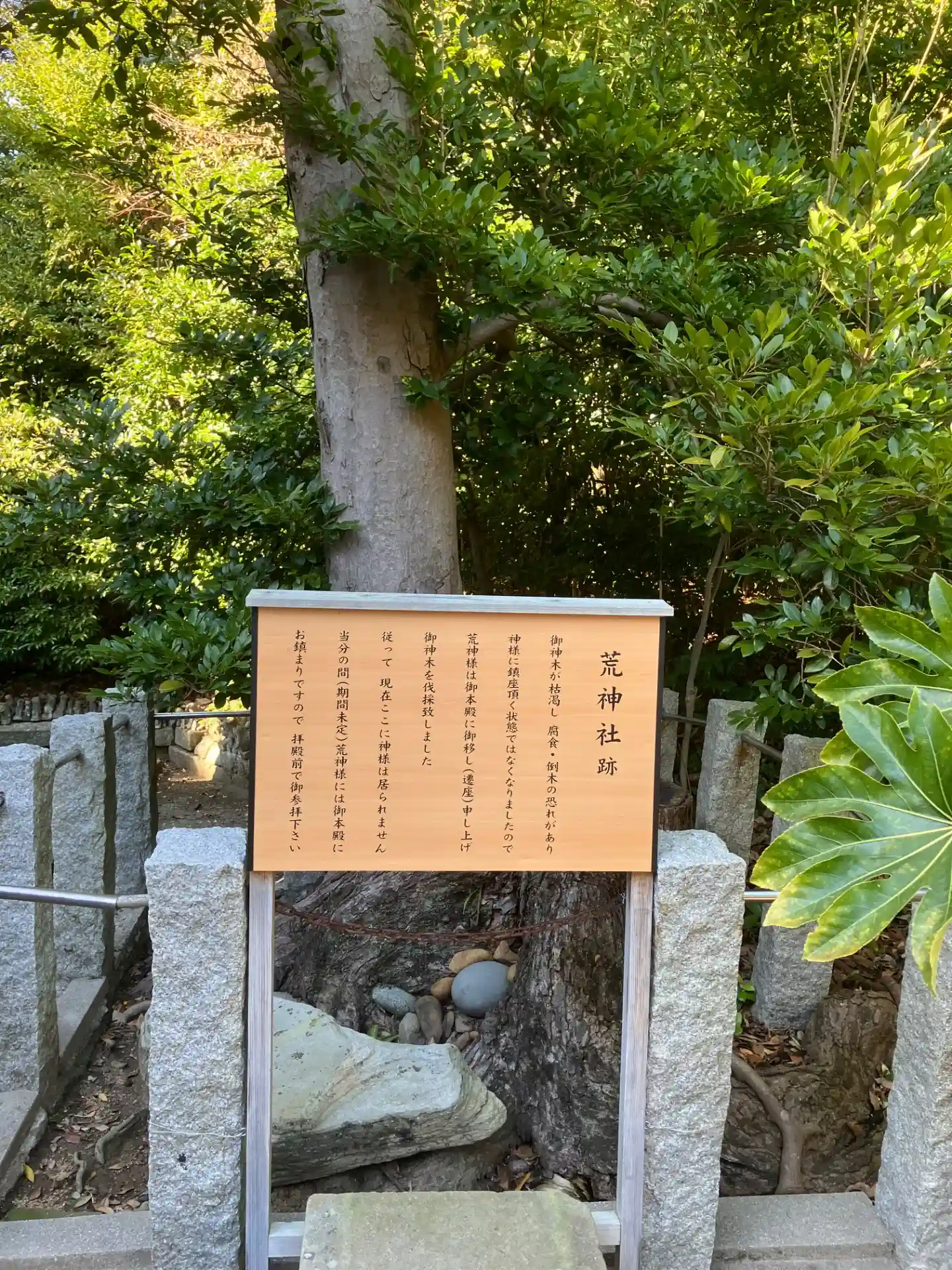 荒神社跡です。看板で見えませんが,御神木が伐採されています。