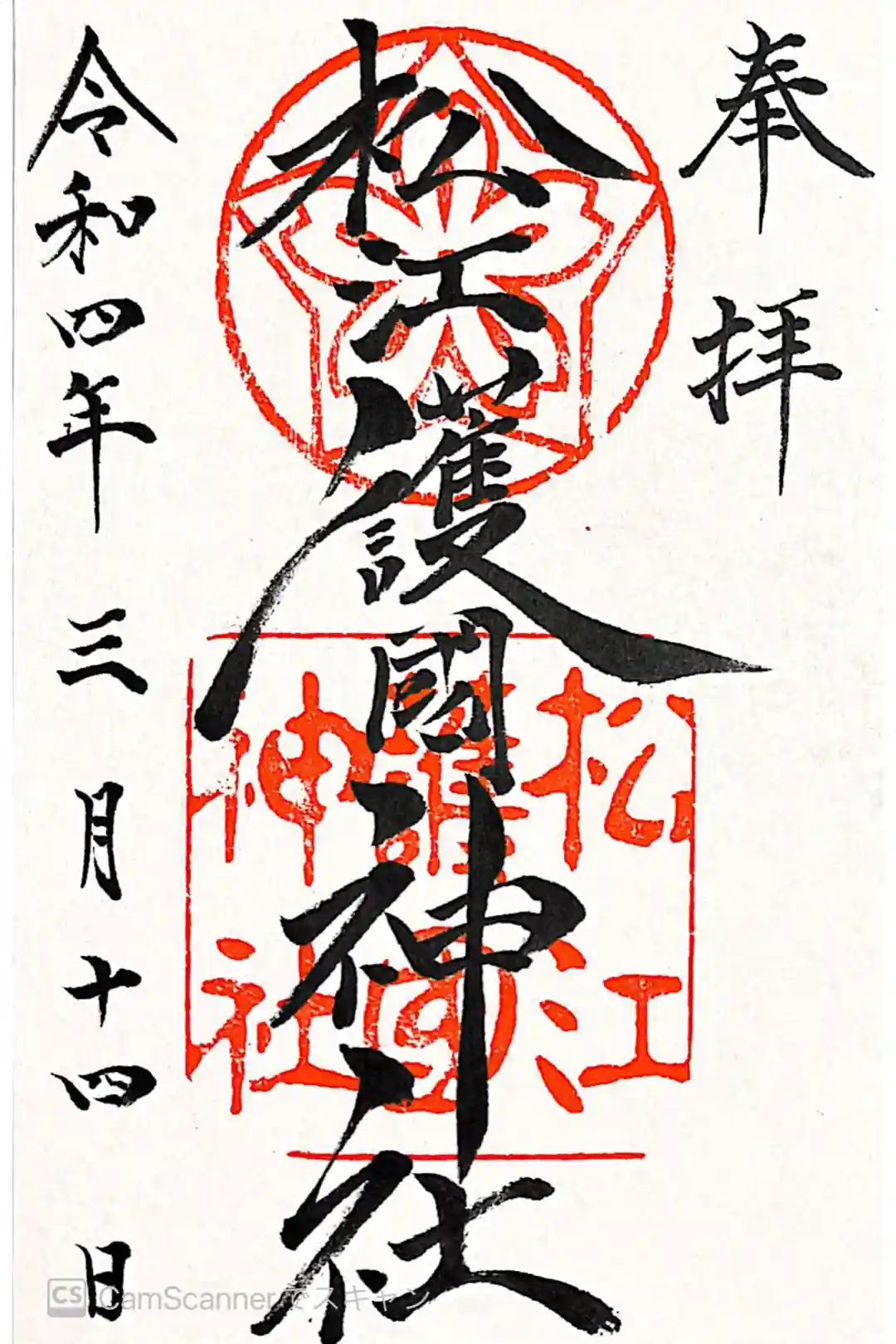 松江護国神社の御朱印