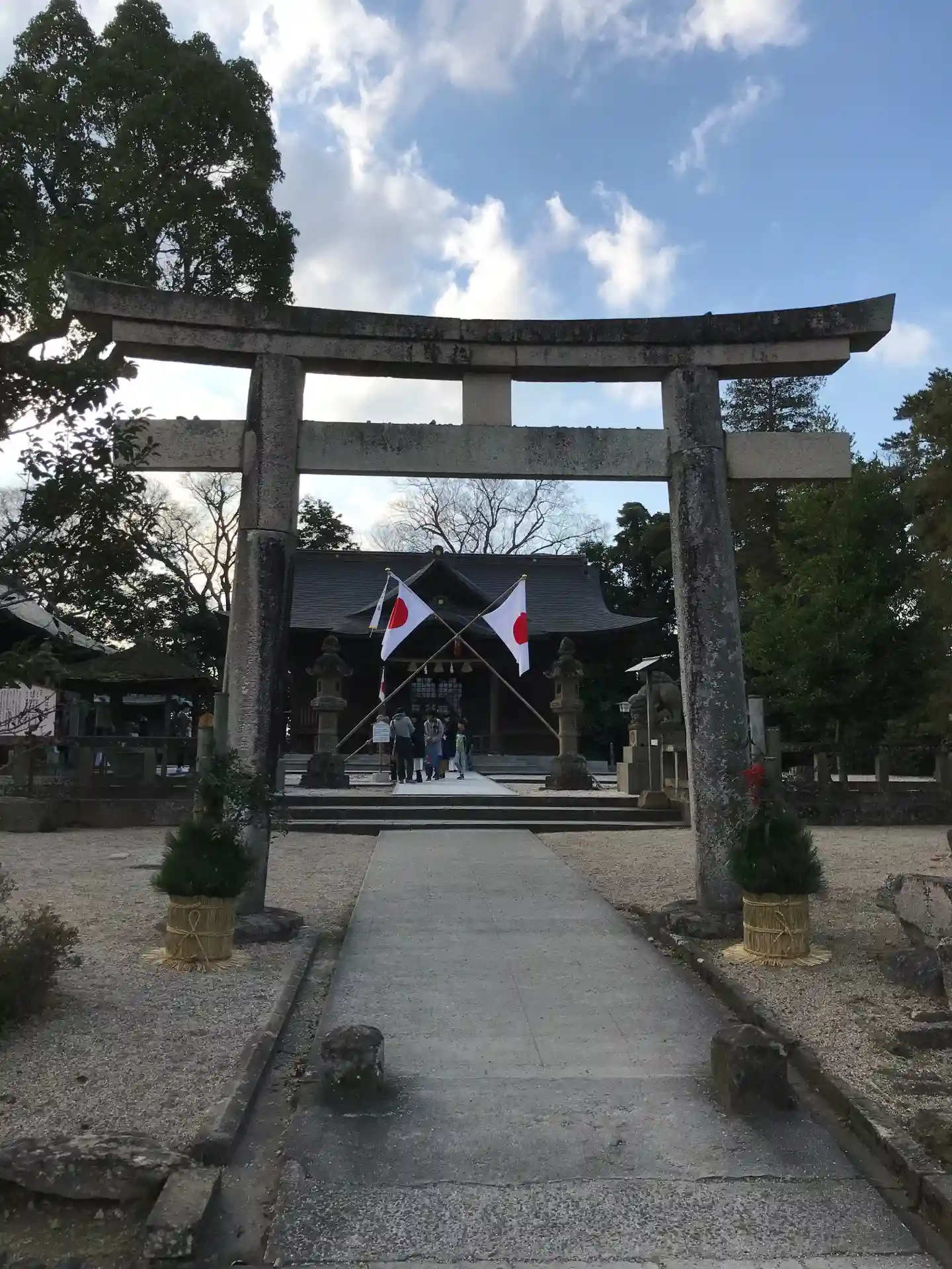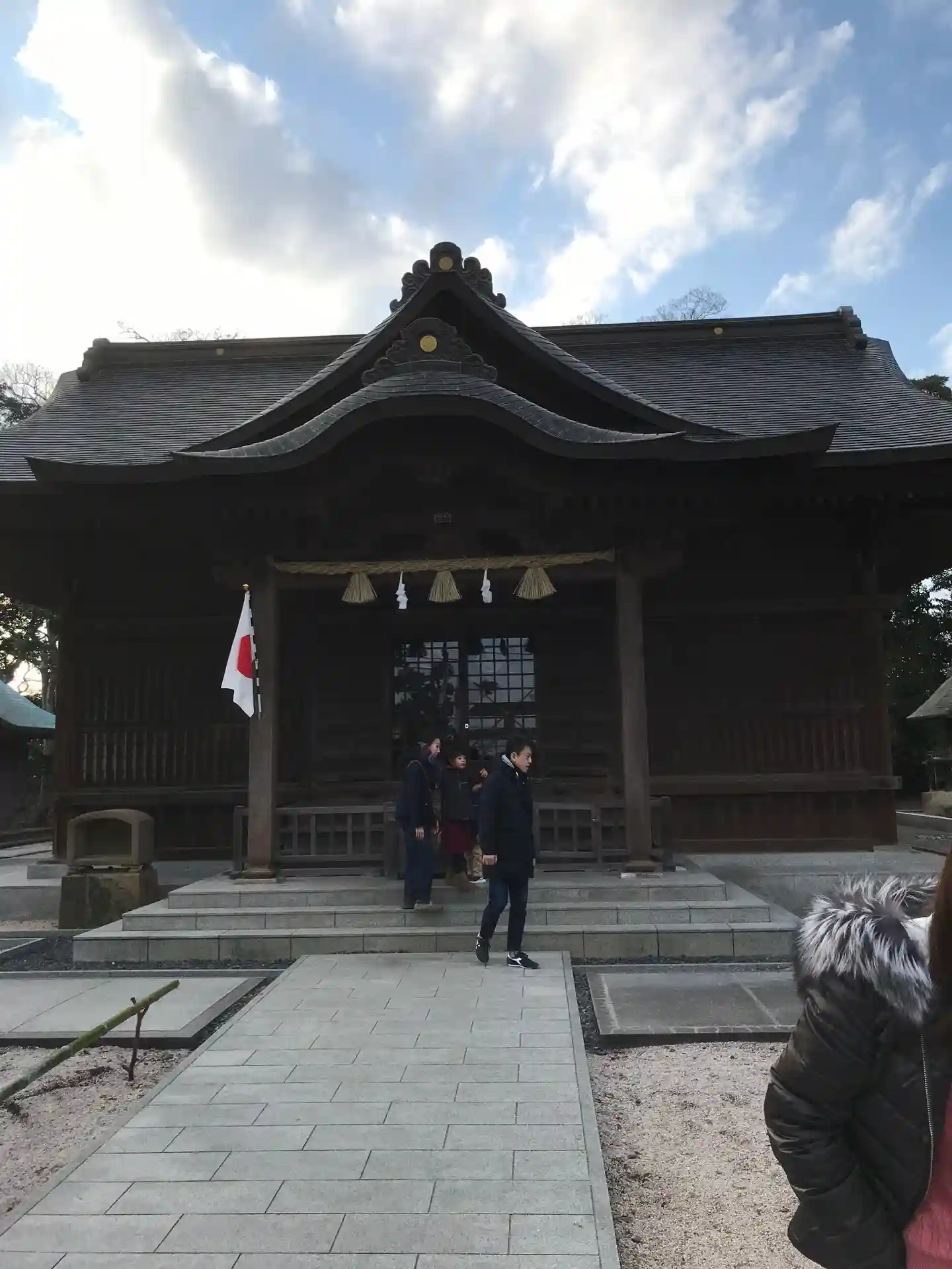 神社正面です。国旗も飾られ,お正月です🎍