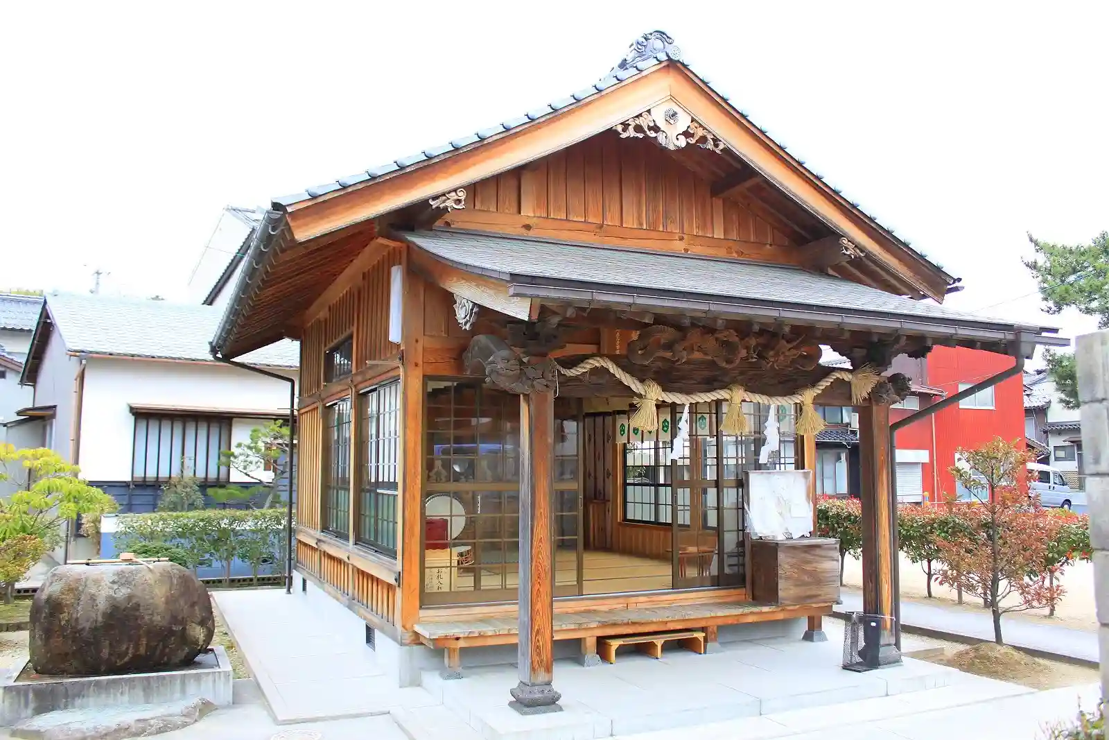 主祭神として「倉稲魂命」を祀った拝殿と本堂が繋がった切妻造り妻入りの神社で、創建年代は不明とされています。