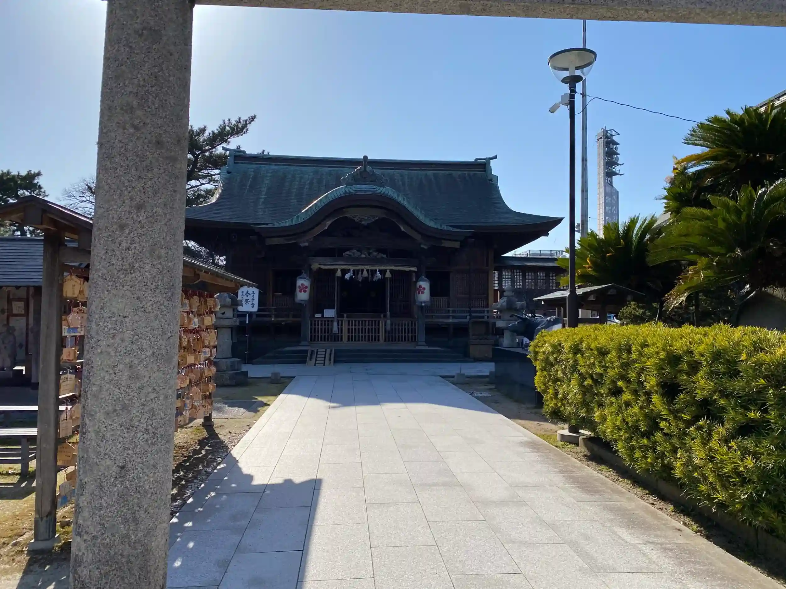神社とは関係ないかもだけれど、鳥居の前のバス停のとこにある電灯?電柱?からなぜかKinKi Kidsの曲が流れてました。これ誰チョイス?自治体で流してるのかな?