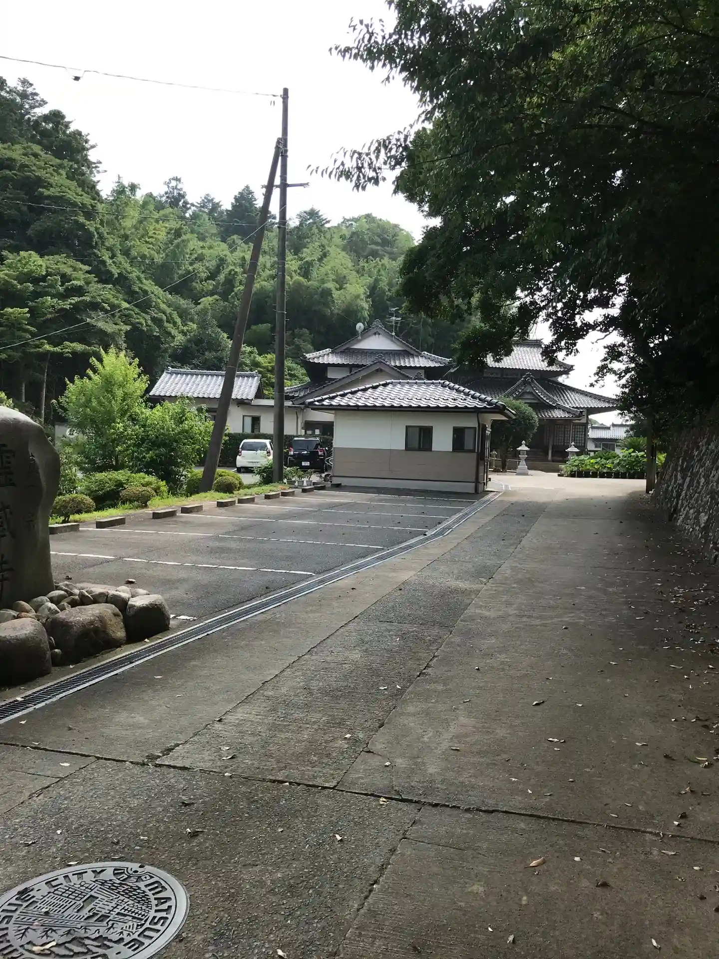 境内へ向かう参道です。駐車場の隣の建物はお手洗いです。ちなみに後ろを振り向くと住宅街です。