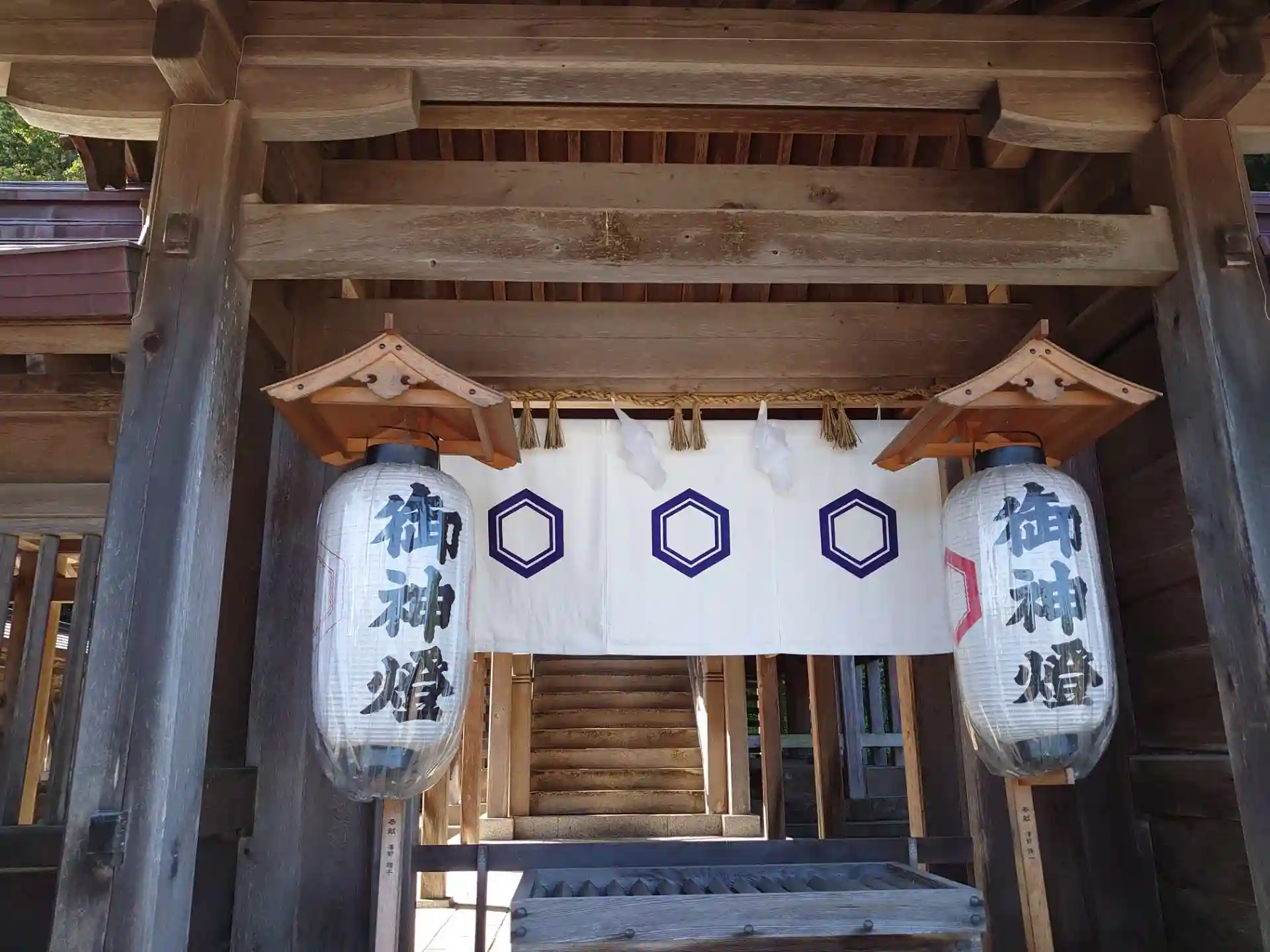 正殿は扇の地紙、北殿は輪違、南殿は二重亀甲が神紋です。
