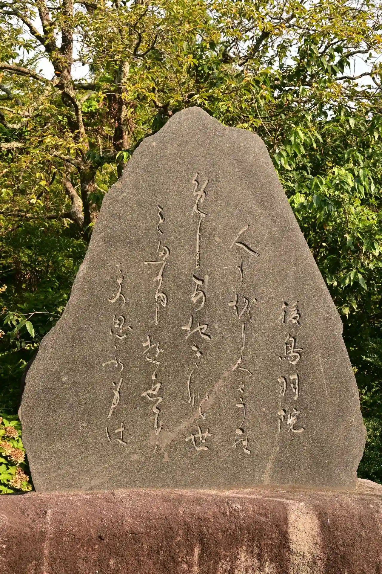 刀剣も嗜んでいたという後鳥羽上皇に奉納された刀剣を打った人間国宝・月山貞一の石碑。