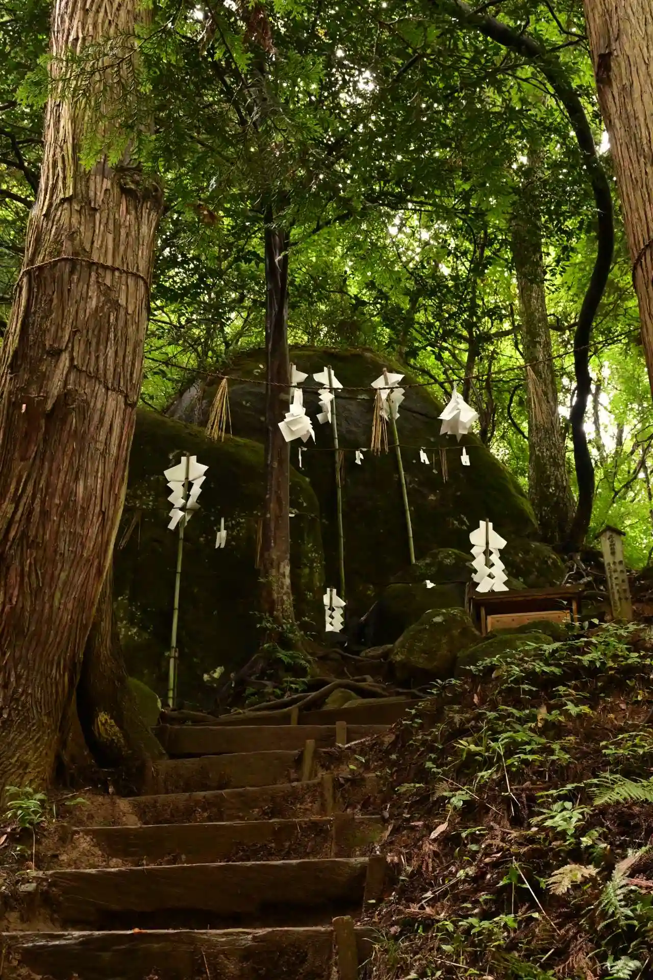 奥宮は森の中に鎮座します。神秘の世界。鳥居をくぐると、やはり空気が変わります。