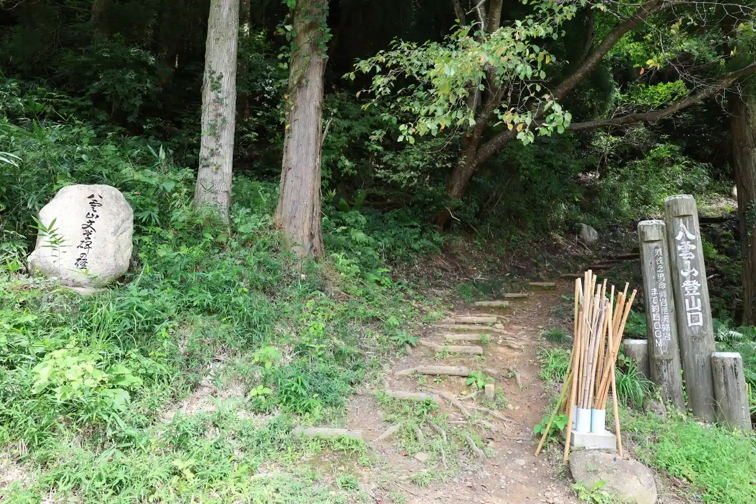 八雲山の登山道✨登山口です!竹の杖があるのがうれしい💓