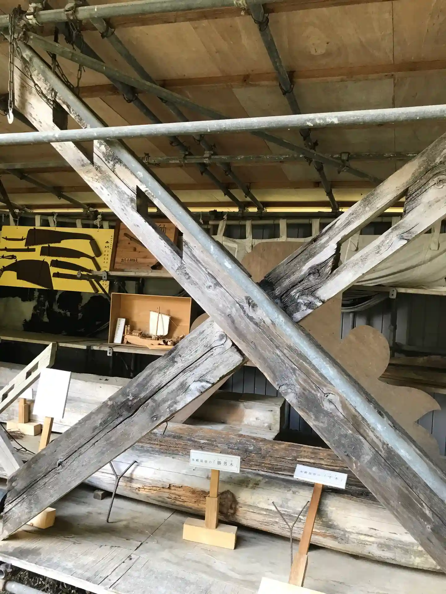 千木と勝男木です。末社と本社とを比較しています。