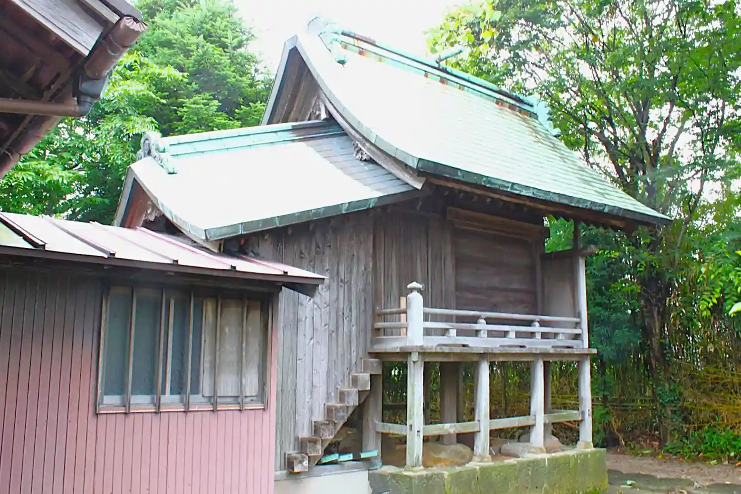 現在の鎮座地は大橋川の河口付近になる川沿いになりますが、もともとはこの地区の川に向かって張り出した高台先端の樹林に鎮座されていたと伝えられています。
